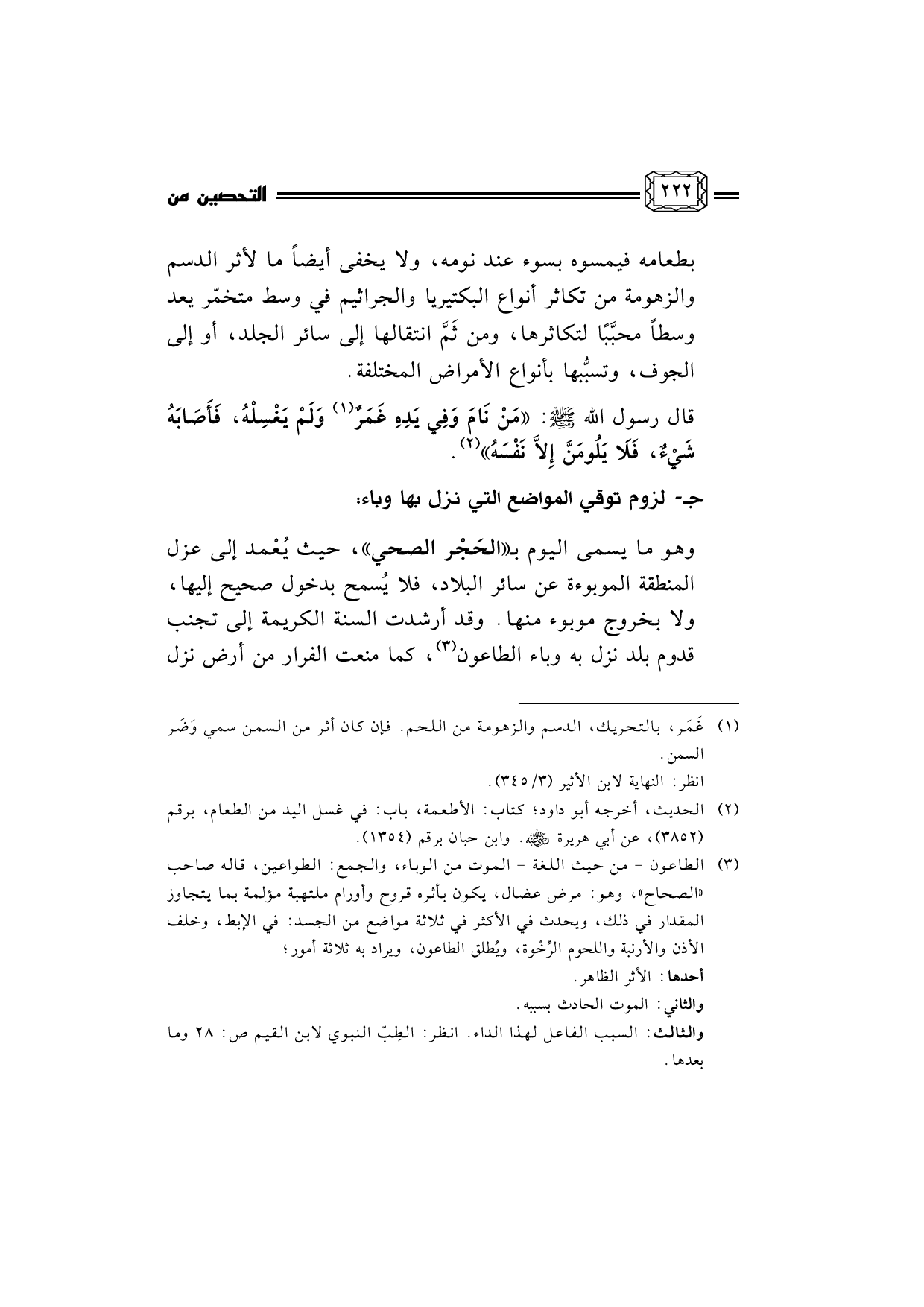 جـ- لزوم توقي المواضع التي نزل بها وباء: