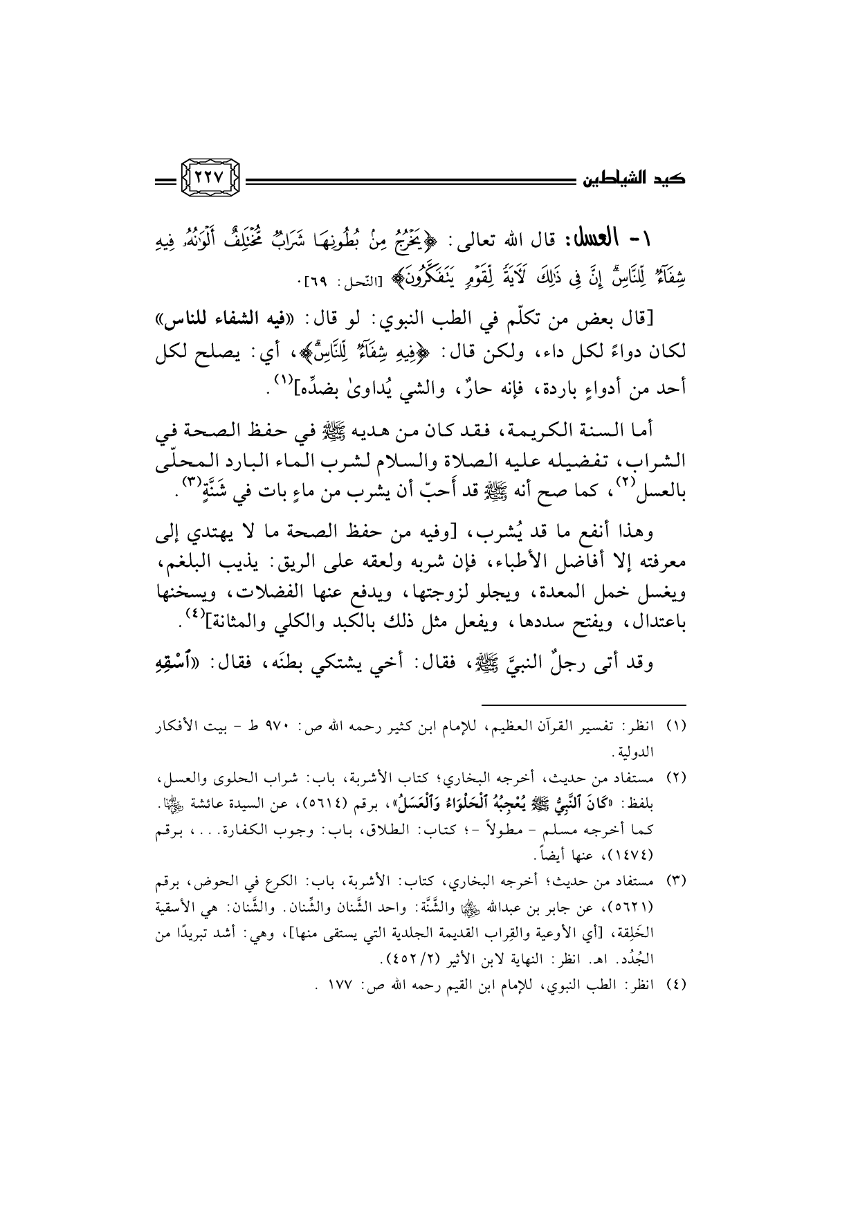 (¬4) انظر: الطب النبوي، للإمام ابن القيم رحمه الله ص: 177.
