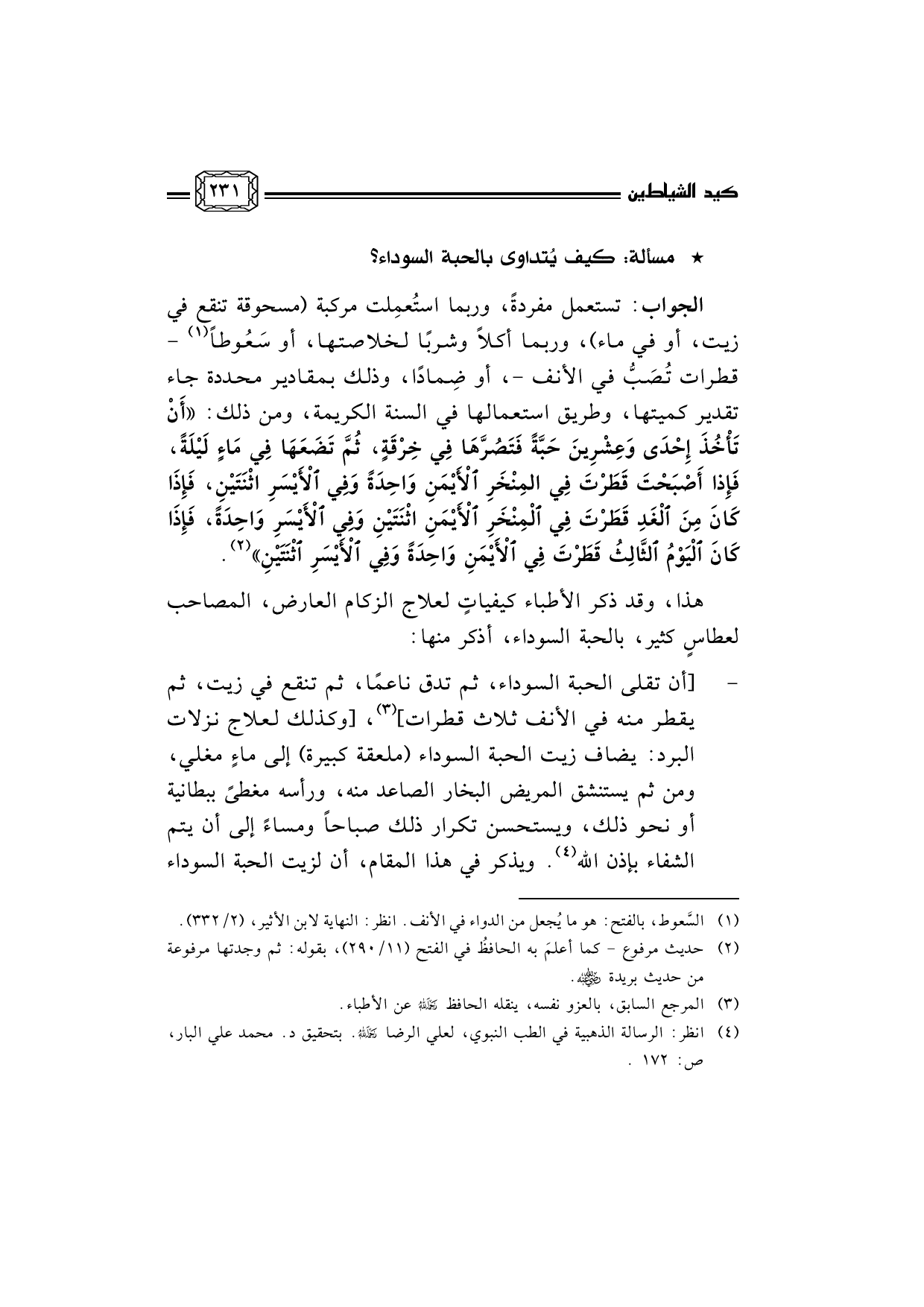 * مسألة: كيف يُتداوى بالحبة السوداء؟