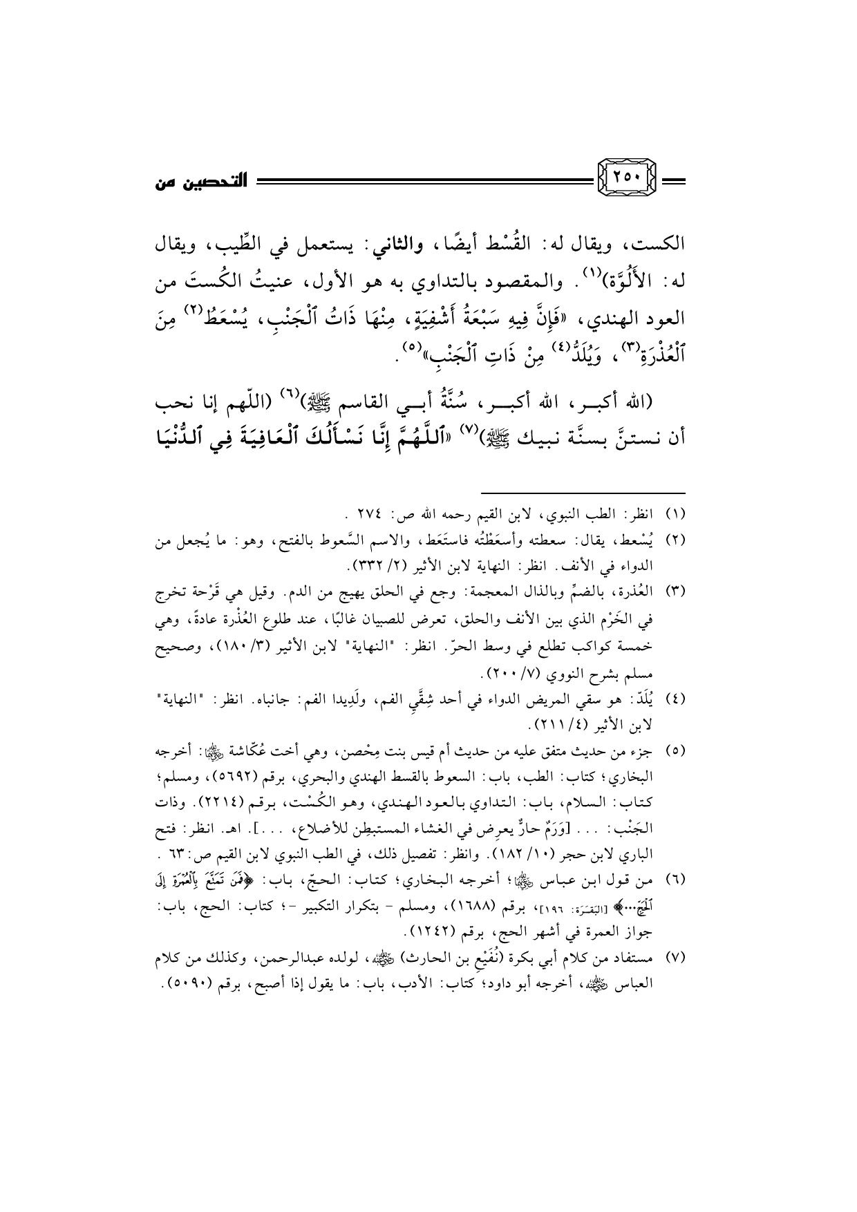 (¬1) انظر: الطب النبوي، لابن القيم رحمه الله ص: 274.