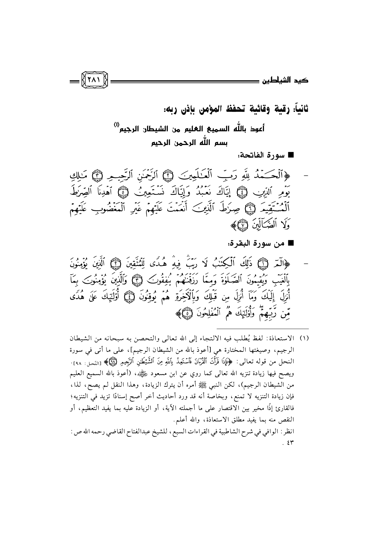 ثانياً: رقية وقائية تحفظ المؤمن بإذن ربه: