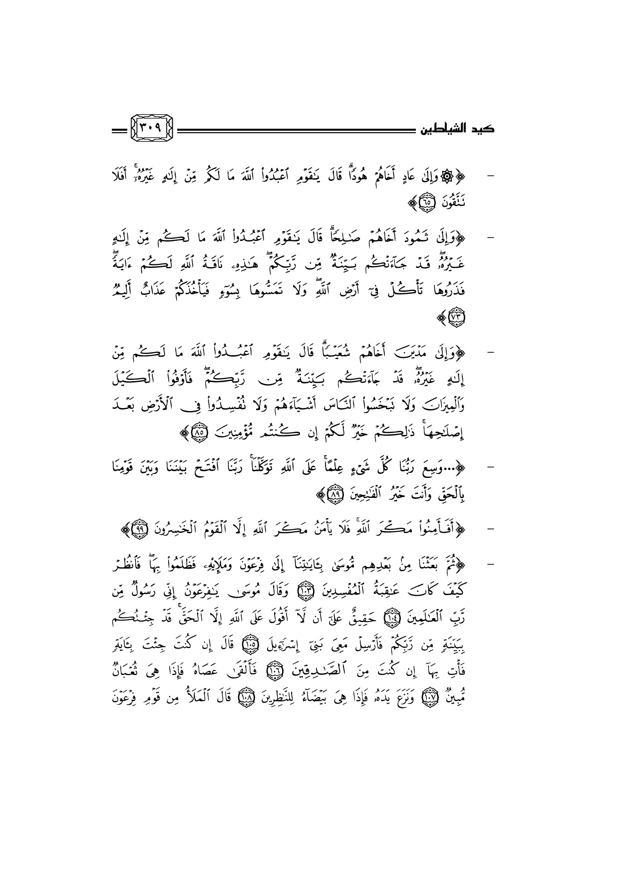 - ... {وَإِلَى مَدْيَنَ أَخَاهُمْ شُعَيْبًا قَالَ يَاقَوْمِ اعْبُدُوا اللَّهَ مَا لَكُمْ مِنْ إِلَهٍ غَيْرُهُ قَدْ جَاءَتْكُمْ بَيِّنَةٌ مِنْ رَبِّكُمْ فَأَوْفُوا الْكَيْلَ وَالْمِيزَانَ وَلاَ تَبْخَسُوا النَّاسَ أَشْيَاءَهُمْ وَلاَ تُفْسِدُوا فِي الأَرْضِ بَعْدَ إِصْلاَحِهَا ذَلِكُمْ خَيْرٌ لَكُمْ إِنْ كُنْتُمْ مُؤْمِنِينَ *}