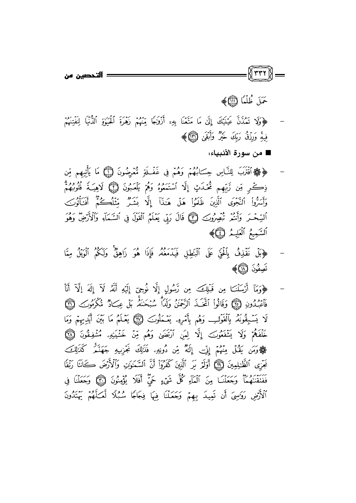 - ... {إِقْتَرَبَ لِلنَّاسِ حِسَابُهُمْ وَهُمْ فِي غَفْلَةٍ مُعْرِضُونَ *مَا يَأْتِيهِمْ مِنْ ذِكْرٍ مِنْ رَبِّهِمْ مُحْدَثٍ إِلاَّ اسْتَمَعُوهُ وَهُمْ يَلْعَبُونَ *لاَهِيَةً قُلُوبُهُمْ وَأَسَرُّوا النَّجْوَى الَّذِينَ ظَلَمُوا هَلْ هَذَا إِلاَّ بَشَرٌ مِثْلُكُمْ أَفَتَأْتُونَ السِّحْرَ وَأَنْتُمْ تُبْصِرُونَ *قَالَ رَبِّي يَعْلَمُ الْقَوْلَ فِي السَّمَاءِ وَالأَْرْضِ وَهُوَ السَّمِيعُ الْعَلِيمُ}