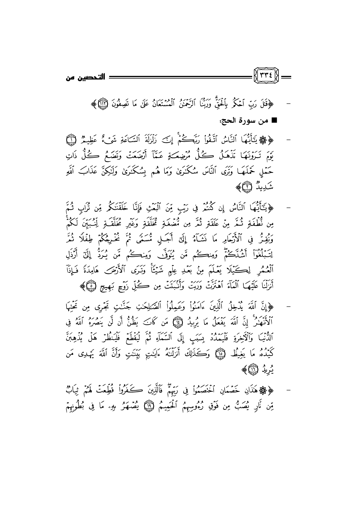 - ... {يَاأَيُّهَا النَّاسُ اتَّقُوا رَبَّكُمْ إِنَّ زَلْزَلَةَ السَّاعَةِ شَيْءٌ عَظِيمٌ *يَوْمَ تَرَوْنَهَا تَذْهَلُ كُلُّ مُرْضِعَةٍ عَمَّا أَرْضَعَتْ وَتَضَعُ كُلُّ ذَاتِ حَمْلٍ حَمْلَهَا وَتَرَى النَّاسَ سُكَارَى وَمَا هُمْ بِسُكَارَى وَلَكِنَّ عَذَابَ اللَّهِ شَدِيدٌ *}