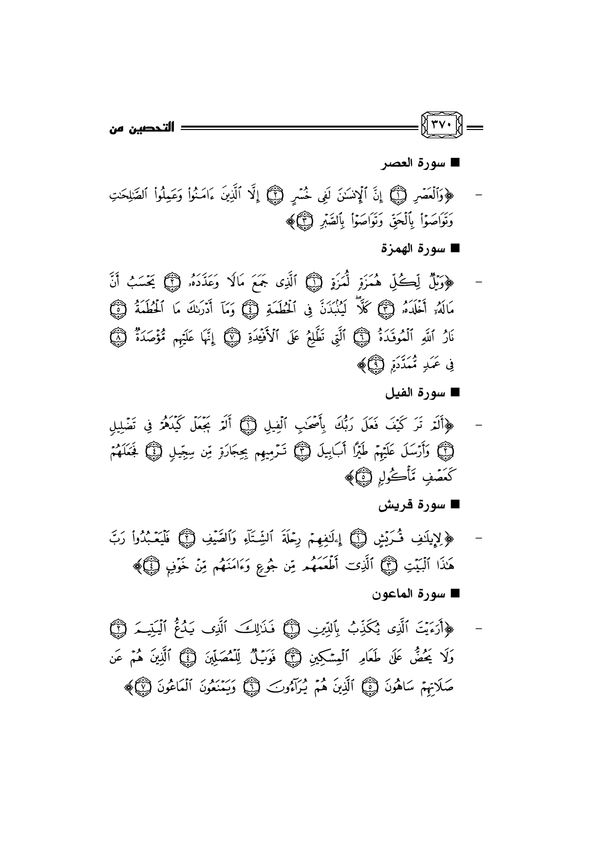 - ... {وَالْعَصْرِ *إِنَّ الإْنْسَانَ لَفِي خُسْرٍ *إِلاَّ الَّذِينَ آمَنُوا وَعَمِلُوا الصَّالِحَاتِ وَتَوَاصَوْا بِالْحَقِّ وَتَوَاصَوْا بِالصَّبْرِ}