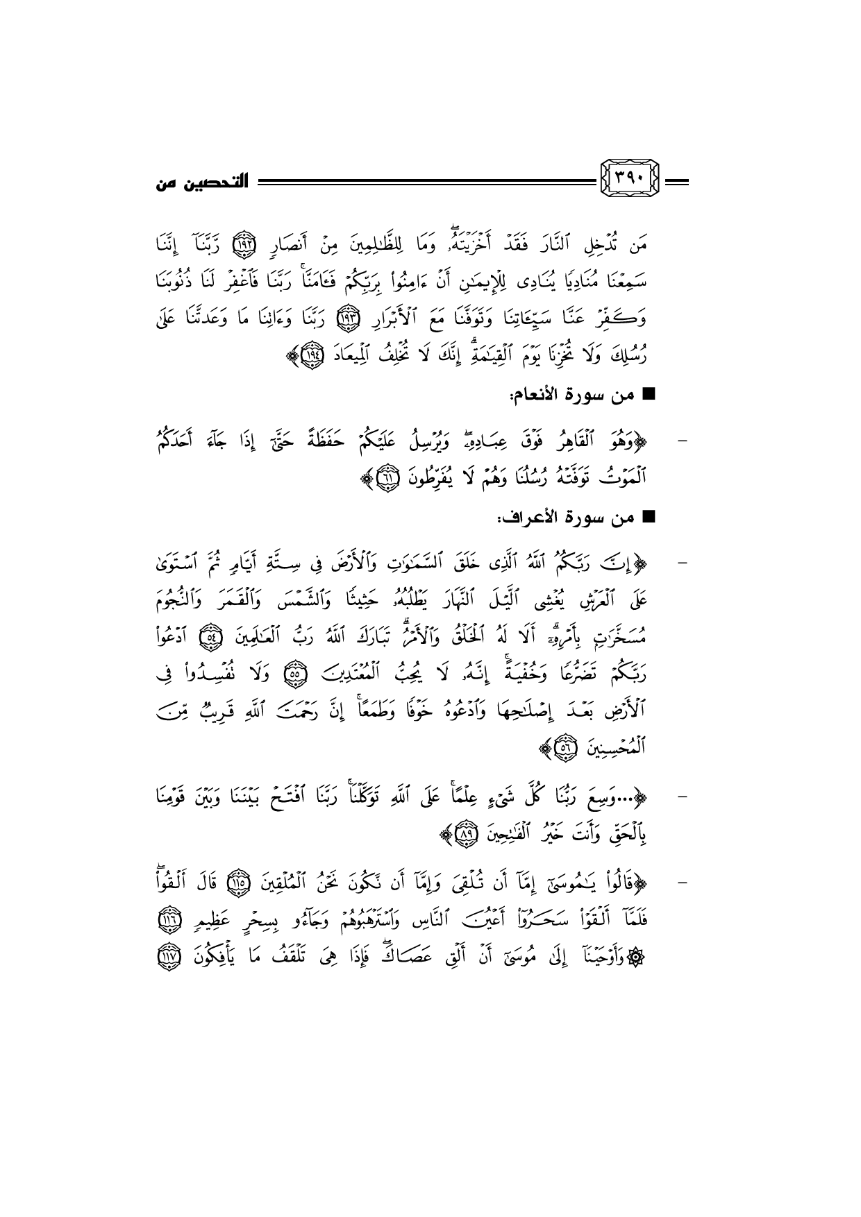 - ... {إِنَّ رَبَّكُمُ اللَّهُ الَّذِي خَلَقَ السَّمَاوَاتِ وَالأَرْضَ فِي سِتَّةِ أَيَّامٍ ثُمَّ اسْتَوَى عَلَى الْعَرْشِ يُغْشِي اللَّيْلَ النَّهَارَ يَطْلُبُهُ حَثِيثًا وَالشَّمْسَ وَالْقَمَرَ وَالنُّجُومَ مُسَخَّرَاتٍ بَأَمْرِهِ أَلاَ لَهُ الْخَلْقُ وَالأَمْرُ تَبَارَكَ اللَّهُ رَبُّ الْعَالَمِينَ *ادْعُوا رَبَّكُمْ تَضَرُّعًا وَخُفْيَةً إِنَّهُ لاَ يُحِبُّ الْمُعْتَدِينَ *وَلاَ تُفْسِدُوا فِي الأَرْضِ بَعْدَ إِصْلاَحِهَا وَادْعُوهُ خَوْفًا وَطَمَعًا إِنَّ رَحْمَةَ اللَّهِ قَرِيبٌ مِنَ الْمُحْسِنِينَ *}