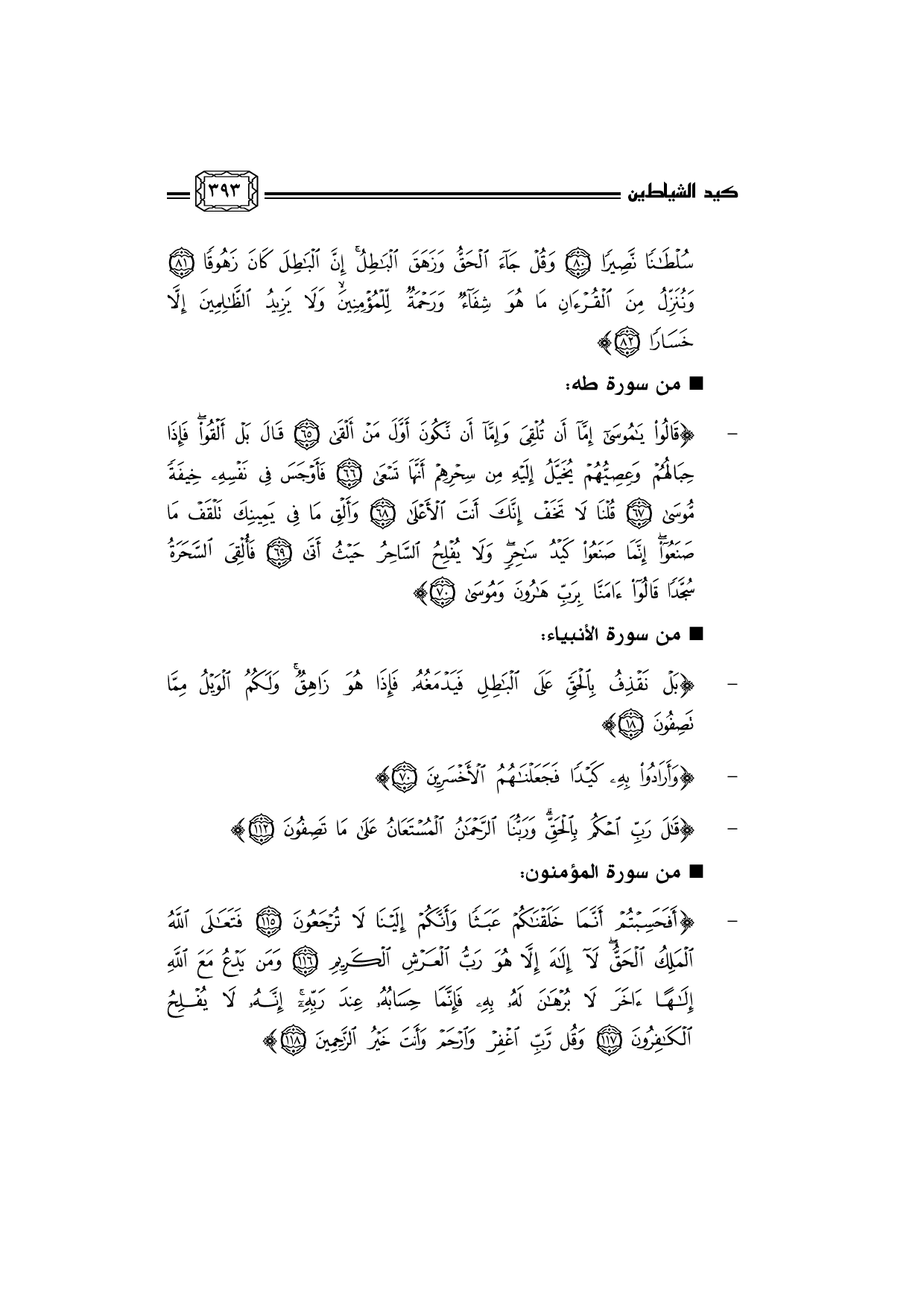 - ... {بَلْ نَقْذِفُ بِالْحَقِّ عَلَى الْبَاطِلِ فَيَدْمَغُهُ فَإِذَا هُوَ زَاهِقٌ وَلَكُمُ الْوَيْلُ مِمَّا تَصِفُونَ *}