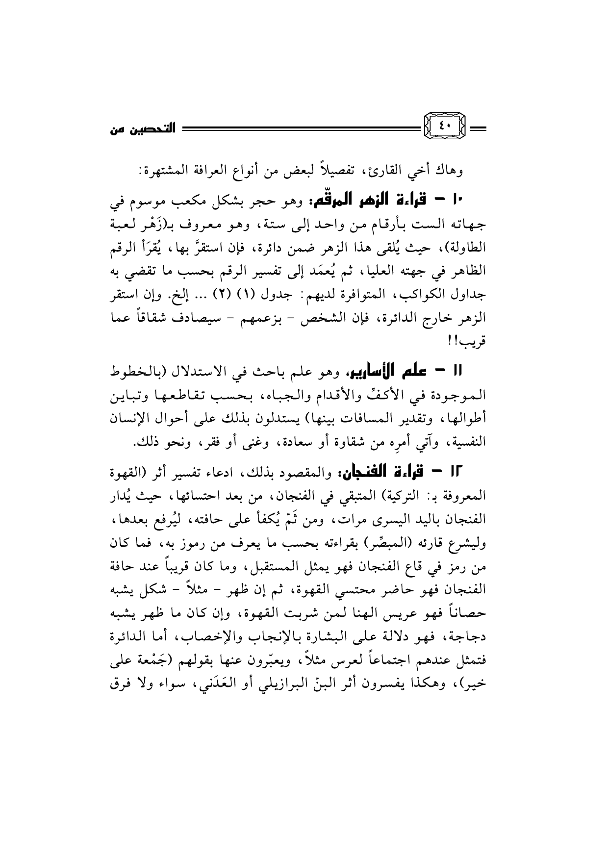 وهاك أخي القارئ، تفصيلاً لبعض من أنواع العرافة المشتهرة: