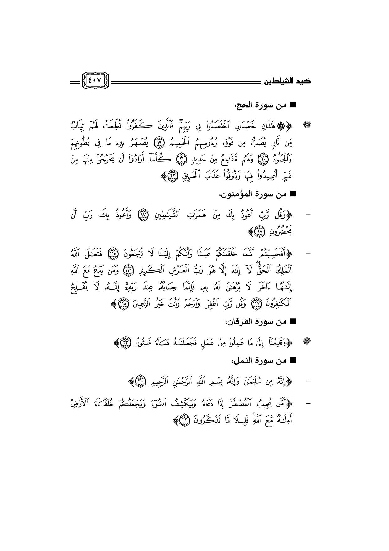 - ... {وَقُلْ رَبِّ أَعُوذُ بِكَ مِنْ هَمَزَاتِ الشَّيَاطِينِ *وَأَعُوذُ بِكَ رَبِّ أَنْ يَحْضُرُونِ *}