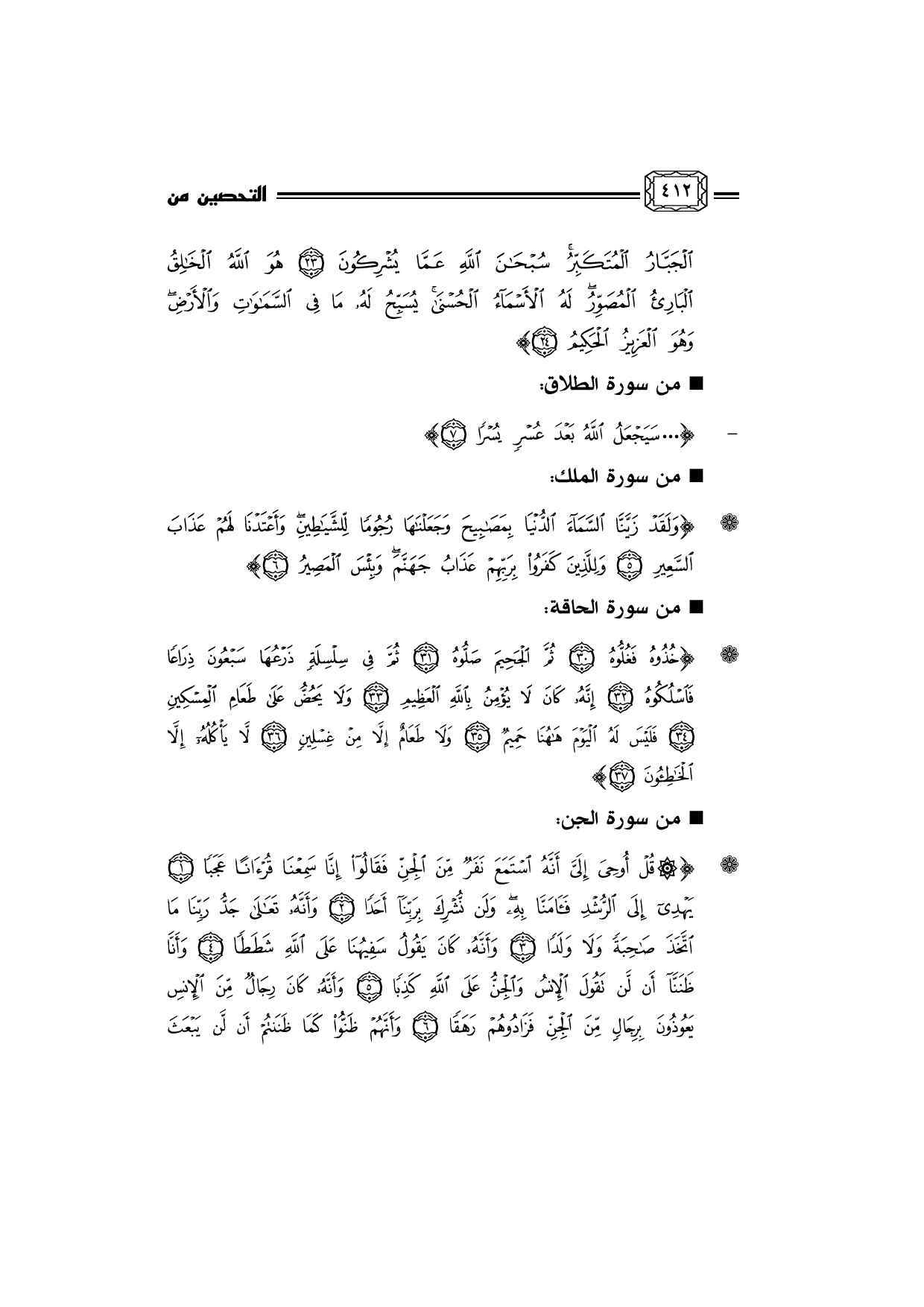 * ... {قُلْ أُوْحِيَ إِلَيَّ أَنَّهُ اسْتَمَعَ نَفَرٌ مِنَ الْجِنِّ فَقَالُوا إِنَّا سَمِعْنَا قُرْآناً عَجَبًا *يَهْدِي إِلَى الرُّشْدِ فَآمَنَّا بِهِ وَلَنْ نُشْرِكَ بِرَبِّنَا أَحَدًا *وَأَنَّهُ تَعَالَى جَدُّ رَبِّنَا مَا اتَّخَذَ صَاحِبَةً وَلاَ وَلَدًا *وَأَنَّهُ كَانَ يَقُولُ سَفِيهُنَا عَلَى اللَّهِ شَطَطًا *وَأَنَّا ظَنَنَّا أَنْ لَنْ تَقُولَ الإِنْسُ وَالْجِنُّ عَلَى اللَّهِ كَذِبًا *وَأَنَّهُ كَانَ رِجَالٌ مِنَ الإِنْسِ يَعُوذُونَ بِرِجَالٍ مِنَ الْجِنِّ فَزَادُوهُمْ رَهَقًا *وَأَنَّهُمْ ظَنُّوا كَمَا ظَنَنْتُمْ أَنْ لَنْ يَبْعَثَ