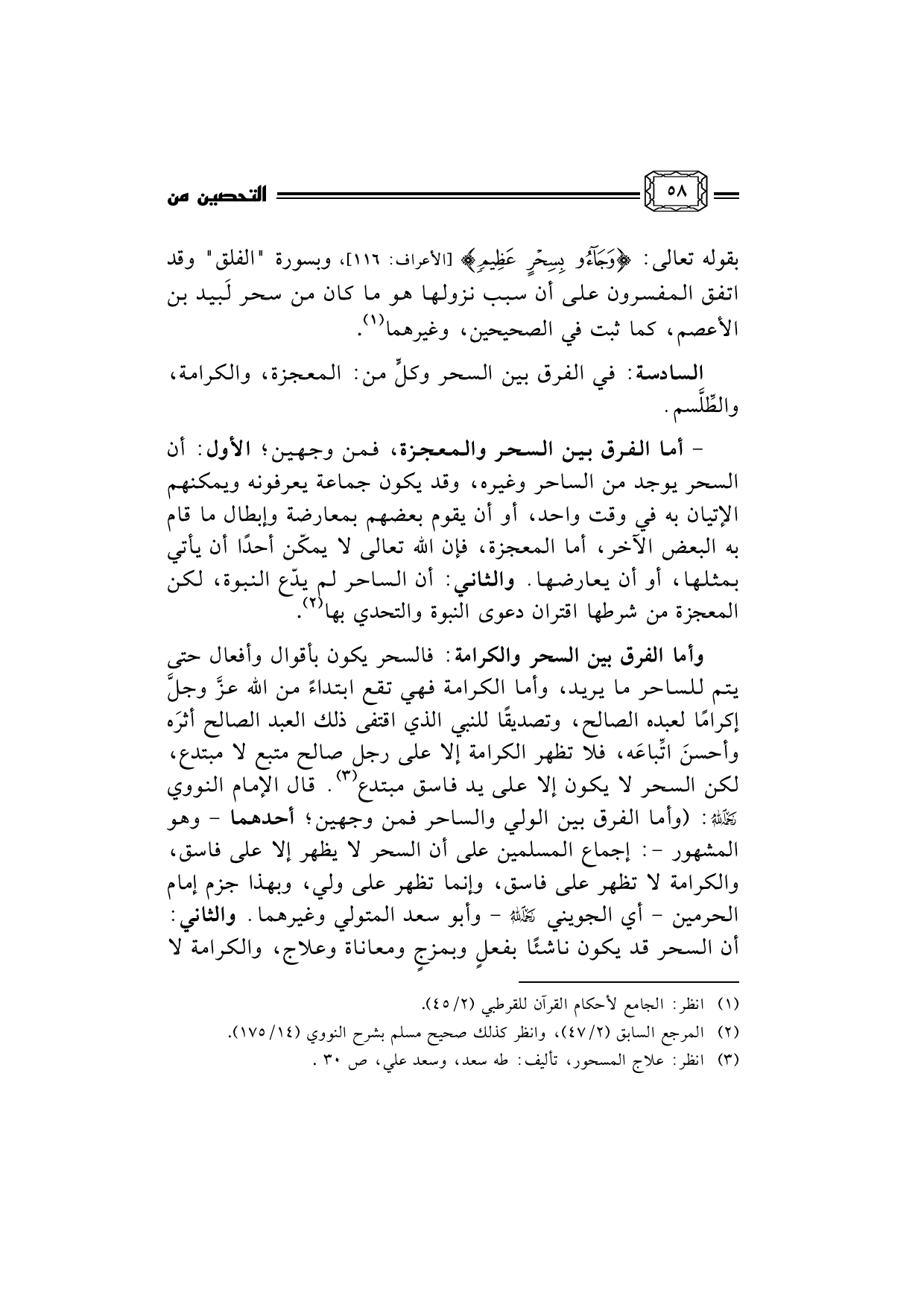 (¬3) انظر: علاج المسحور، تأليف: طه سعد، وسعد علي، ص 30.