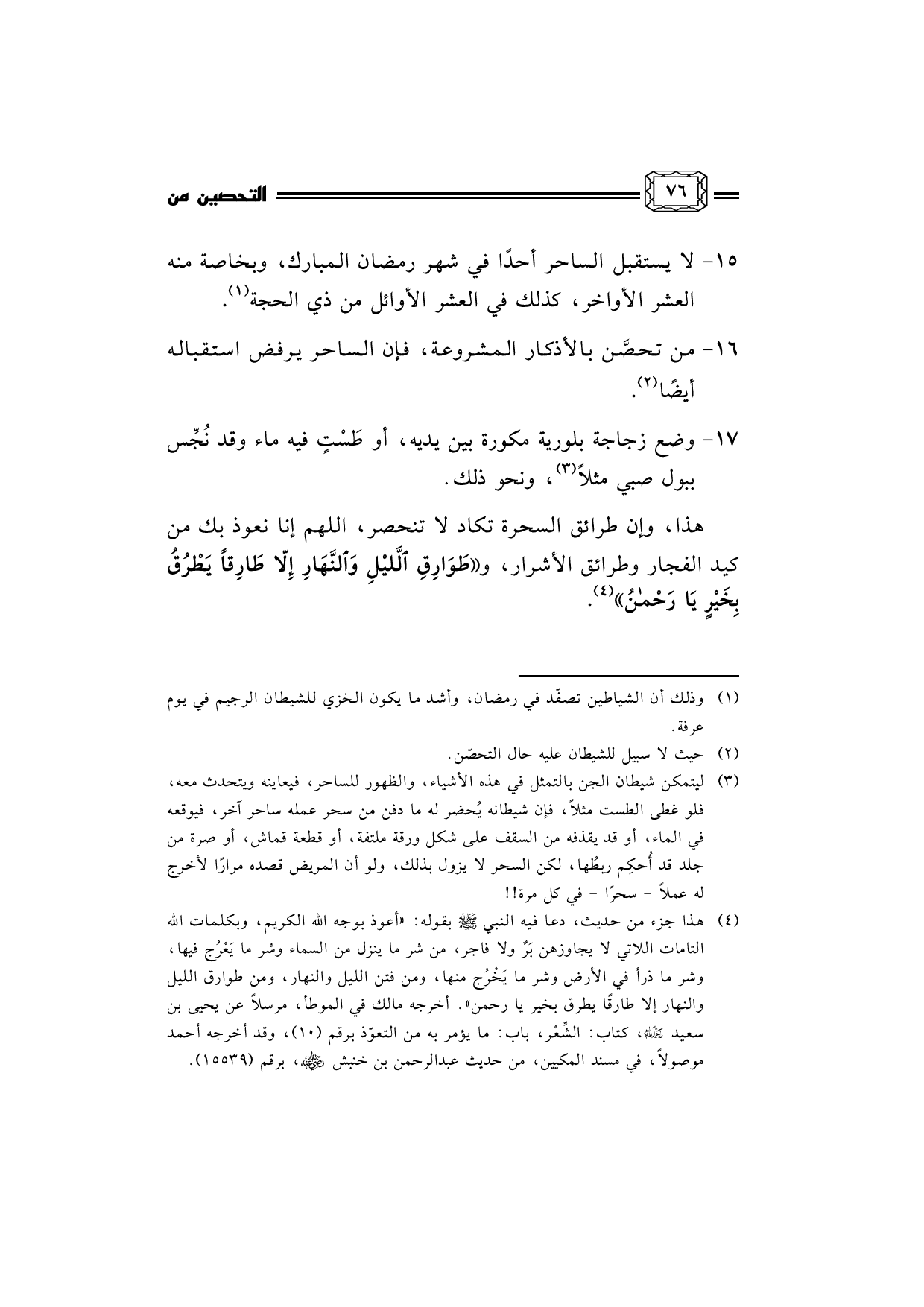 16- ... من تحصَّن بالأذكار المشروعة، فإن الساحر يرفض استقباله أيضًا (¬2) .