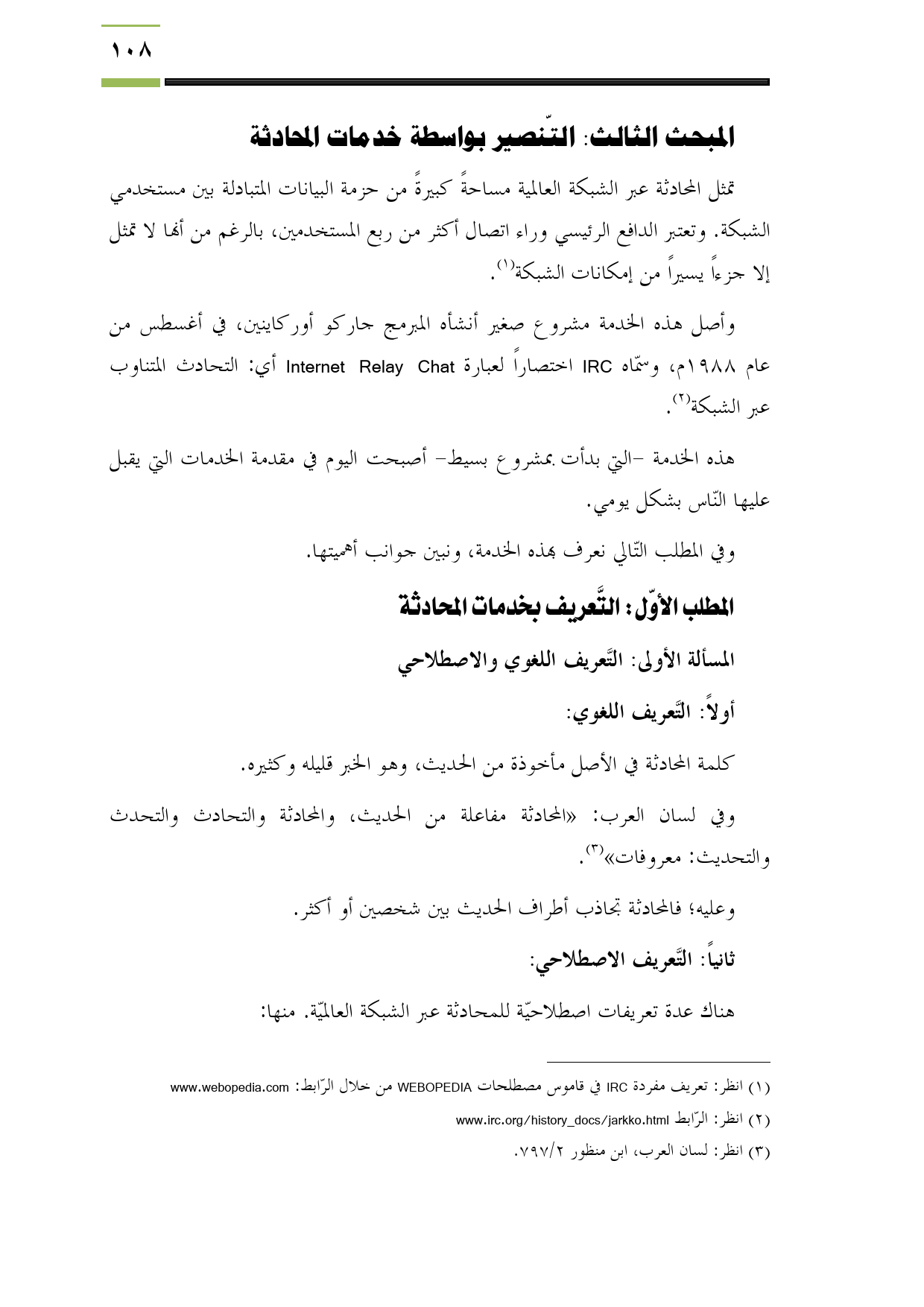 (¬1) انظر: تعريف مفردة IRC في قاموس مصطلحات WEBOPEDIA من خلال الرّابط: www.webopedia.com