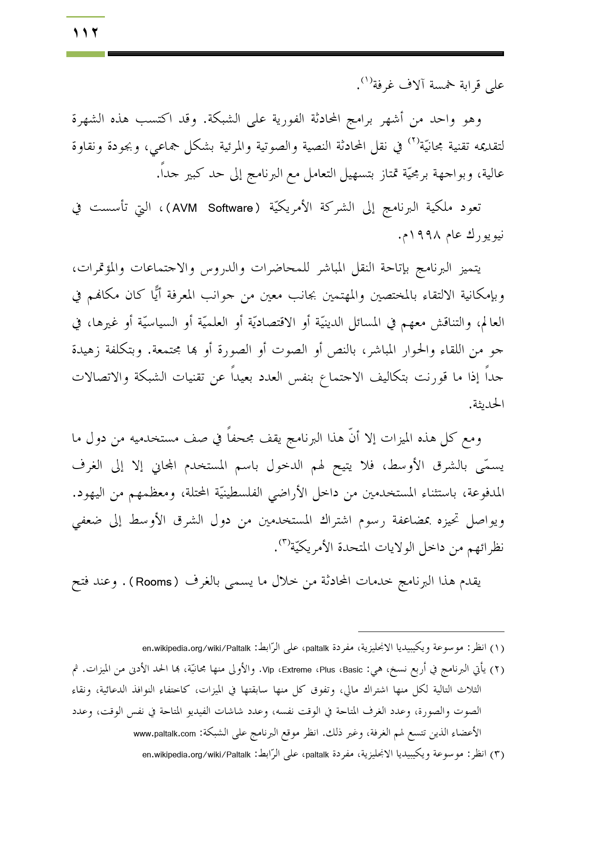 (¬3) انظر: موسوعة ويكيبيديا الانجليزية، مفردة paltalk، على الرّابط: en.wikipedia.org/wiki/Paltalk