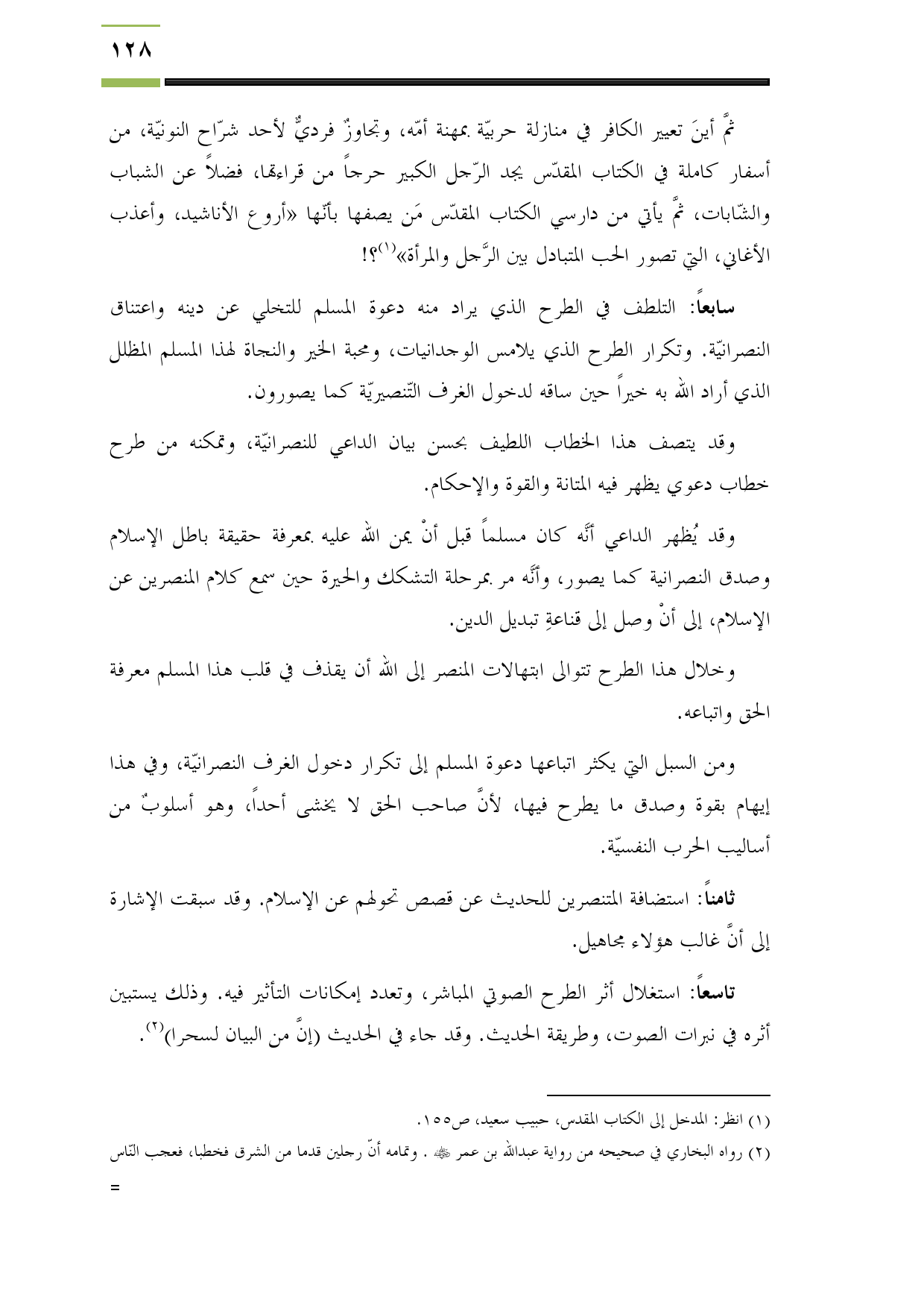 ثامناً: استضافة المتنصرين للحديث عن قصص تحولهم عن الإسلام. وقد سبقت الإشارة إلى أنَّ غالب هؤلاء مجاهيل.