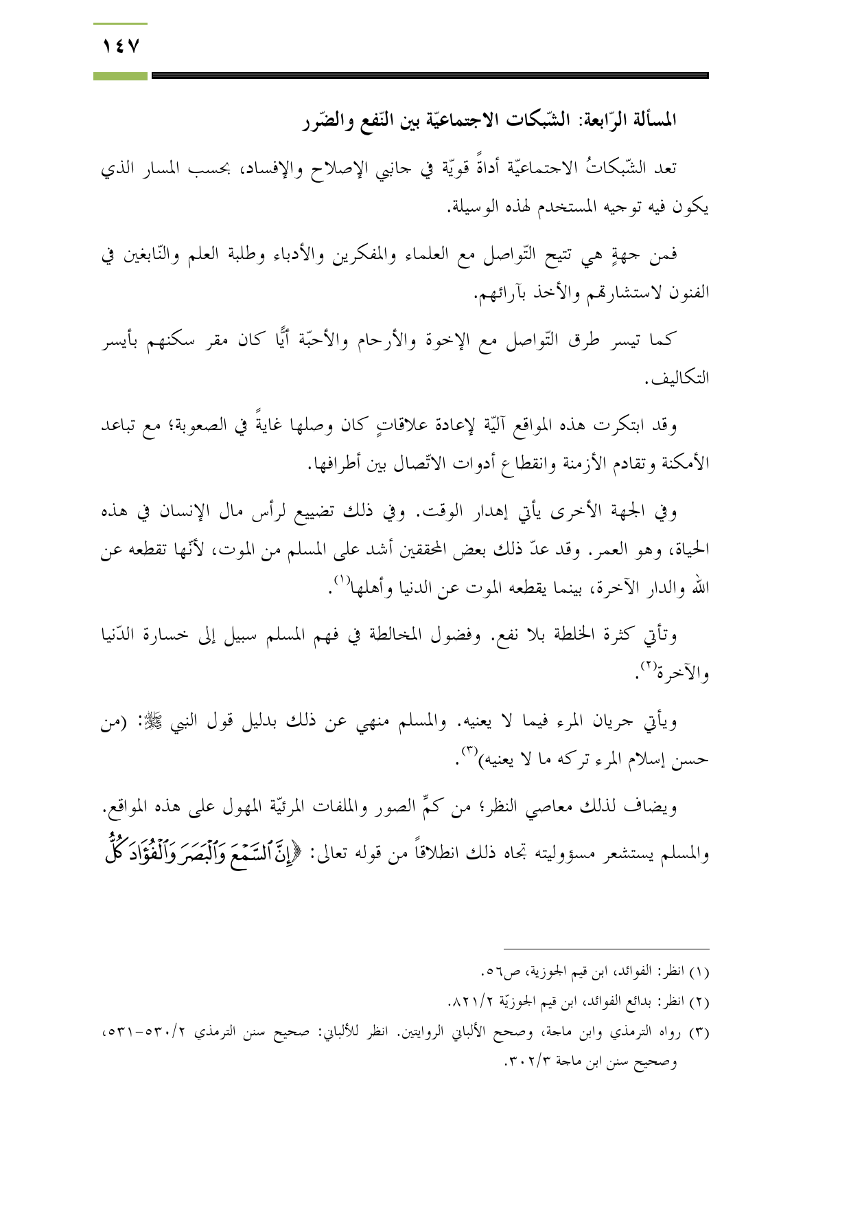 المسألة الرّابعة: الشّبكات الاجتماعيّة بين النّفع والضّرر