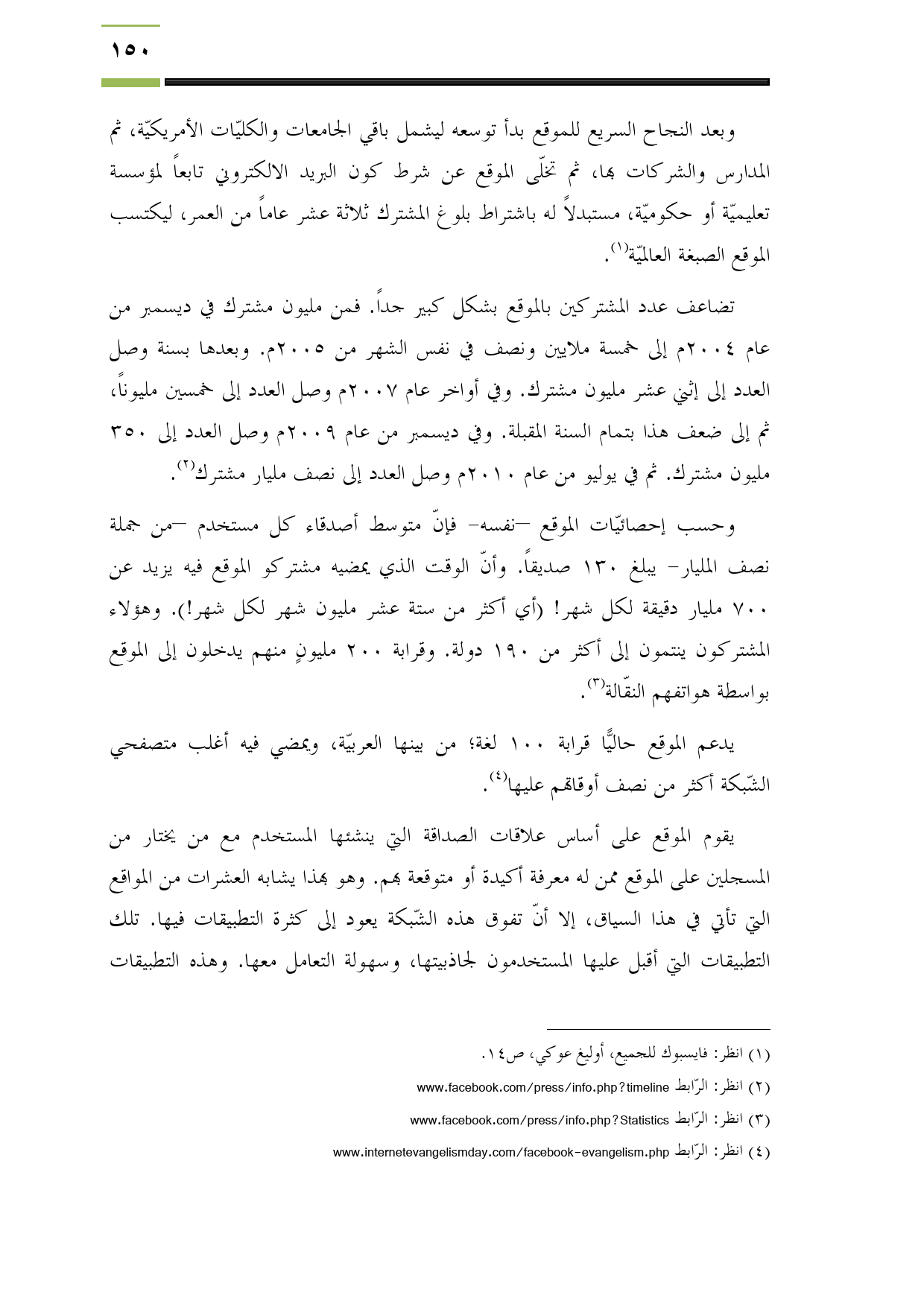 (¬4) انظر: الرّابط www.internetevangelismday.com/facebook-evangelism.php