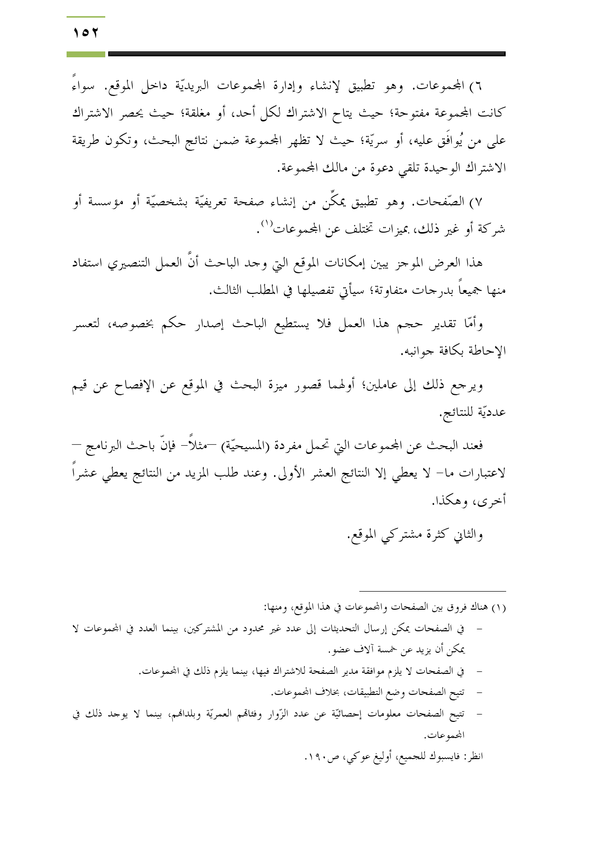 (¬1) هناك فروق بين الصفحات والمجموعات في هذا الموقع، ومنها:
