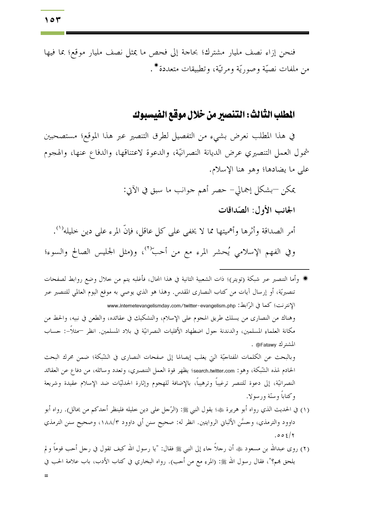 المطلب الثالث: التنصير من خلال موقع الفيسبوك