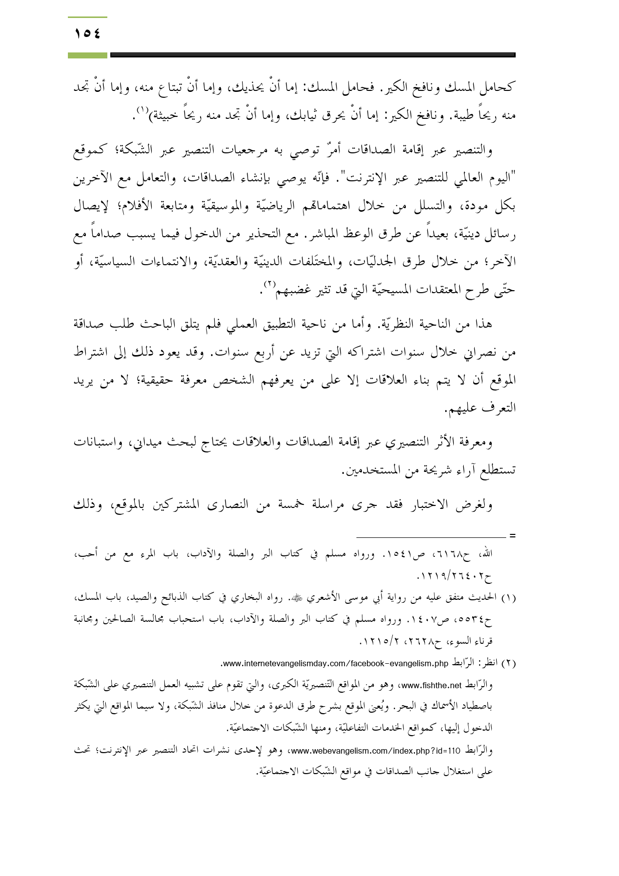 (¬2) انظر: الرّابط www.internetevangelismday.com/facebook-evangelism.php.
