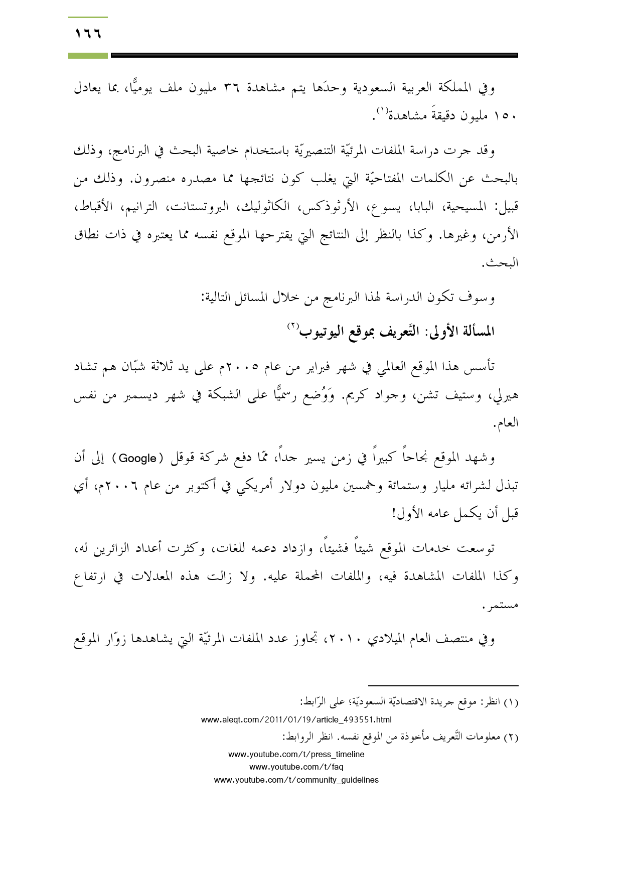 المسألة الأولى: التَّعريف بموقع اليوتيوب (¬2)
