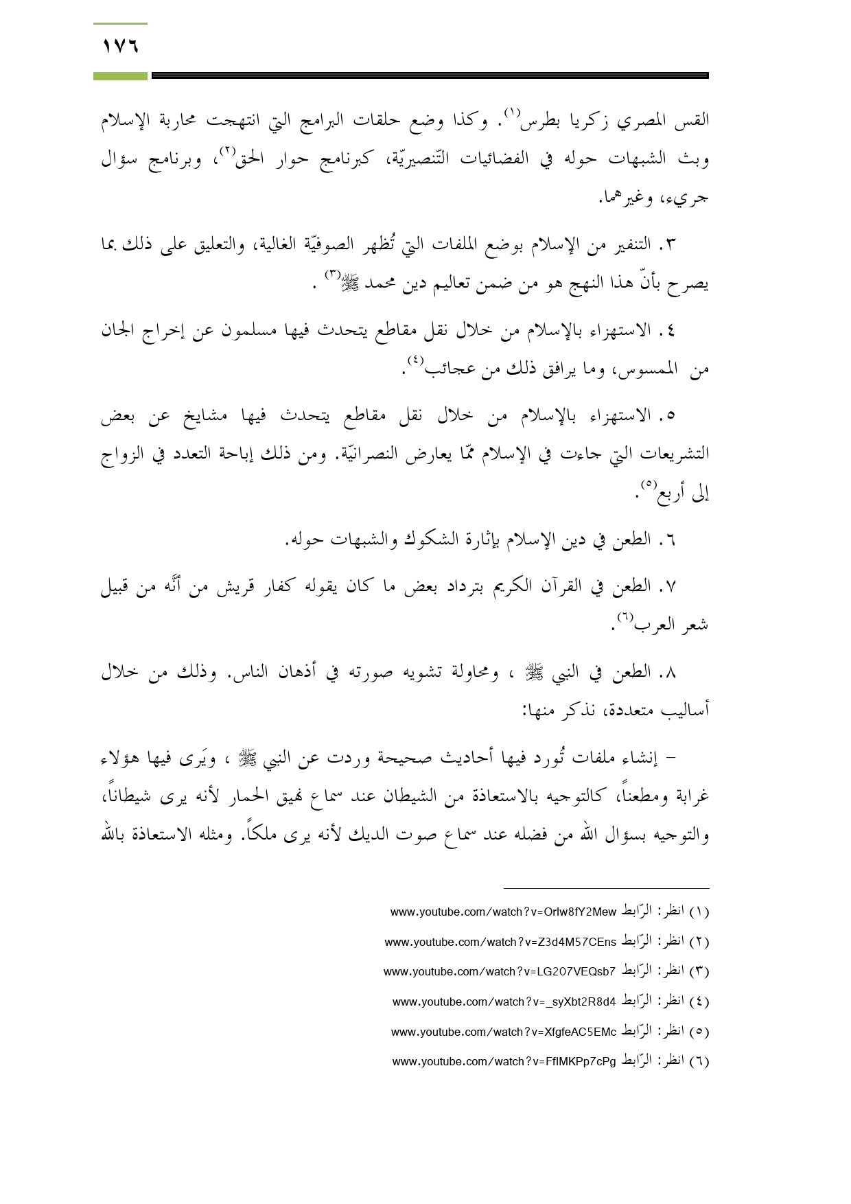 5. الاستهزاء بالإسلام من خلال نقل مقاطع يتحدث فيها مشايخ عن بعض التشريعات التي جاءت في الإسلام ممّا يعارض النصرانيّة. ومن ذلك إباحة التعدد في الزواج إلى أربع (¬5).