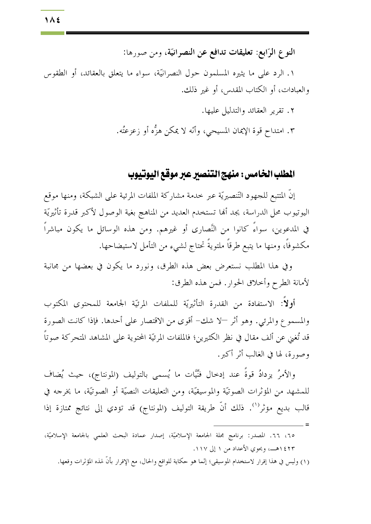 المطلب الخامس: منهج التنصير عبر موقع اليوتيوب