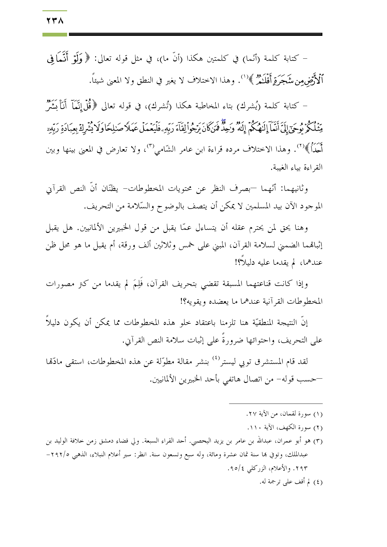 وهنا يحق لمن يحترم عقله أن يتساءل عمّا يقبل من قول الخبيرين الألمانيين. هل يقبل إثباتهما الضمني لسلامة القرآن، المبني على خمس وثلاثين ألف ورقة، أم يقبل ما هو محل ظن عندهما، لم يقدما عليه دليلاً؟!