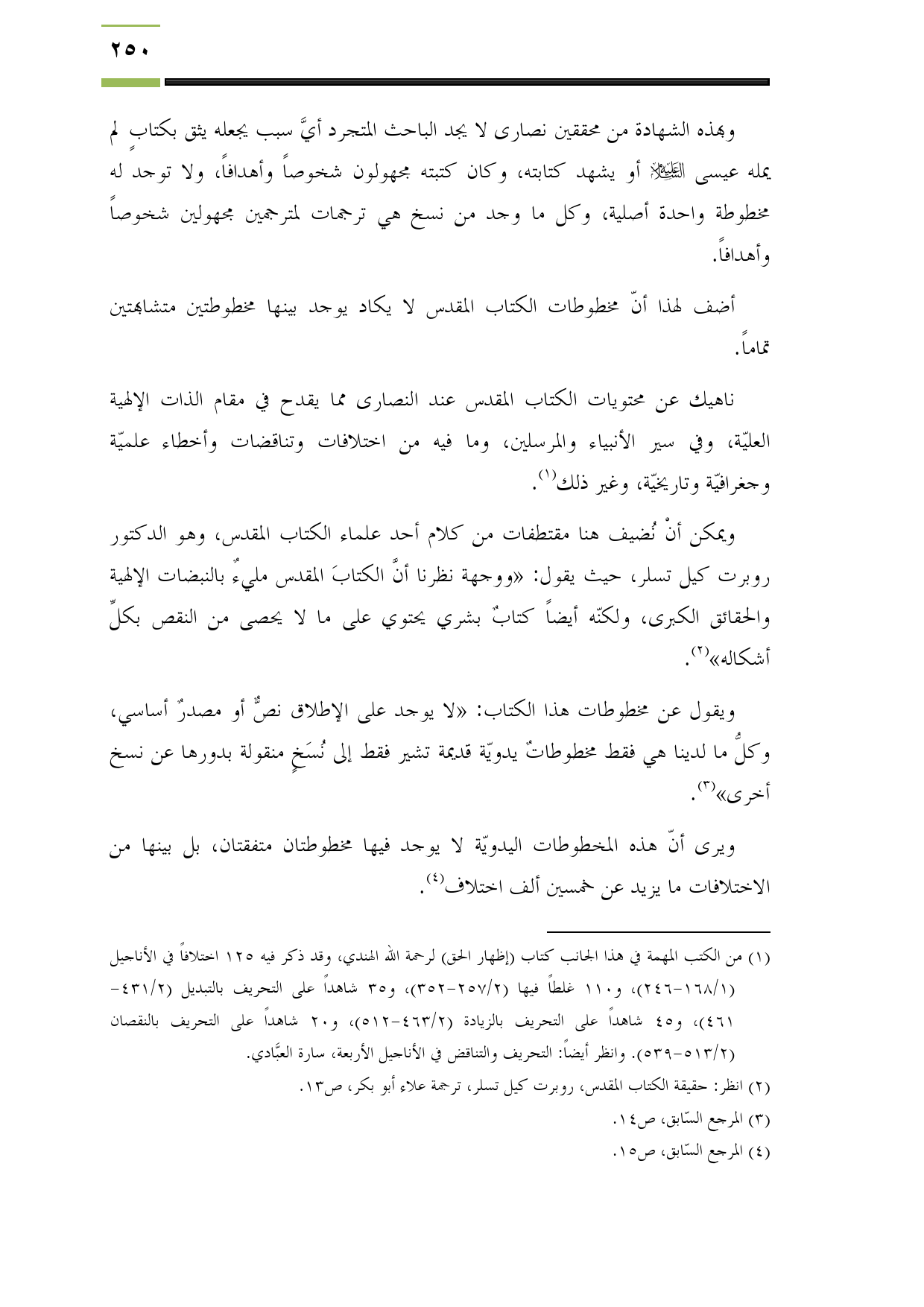 (¬2) انظر: حقيقة الكتاب المقدس، روبرت كيل تسلر، ترجمة علاء أبو بكر، ص13.