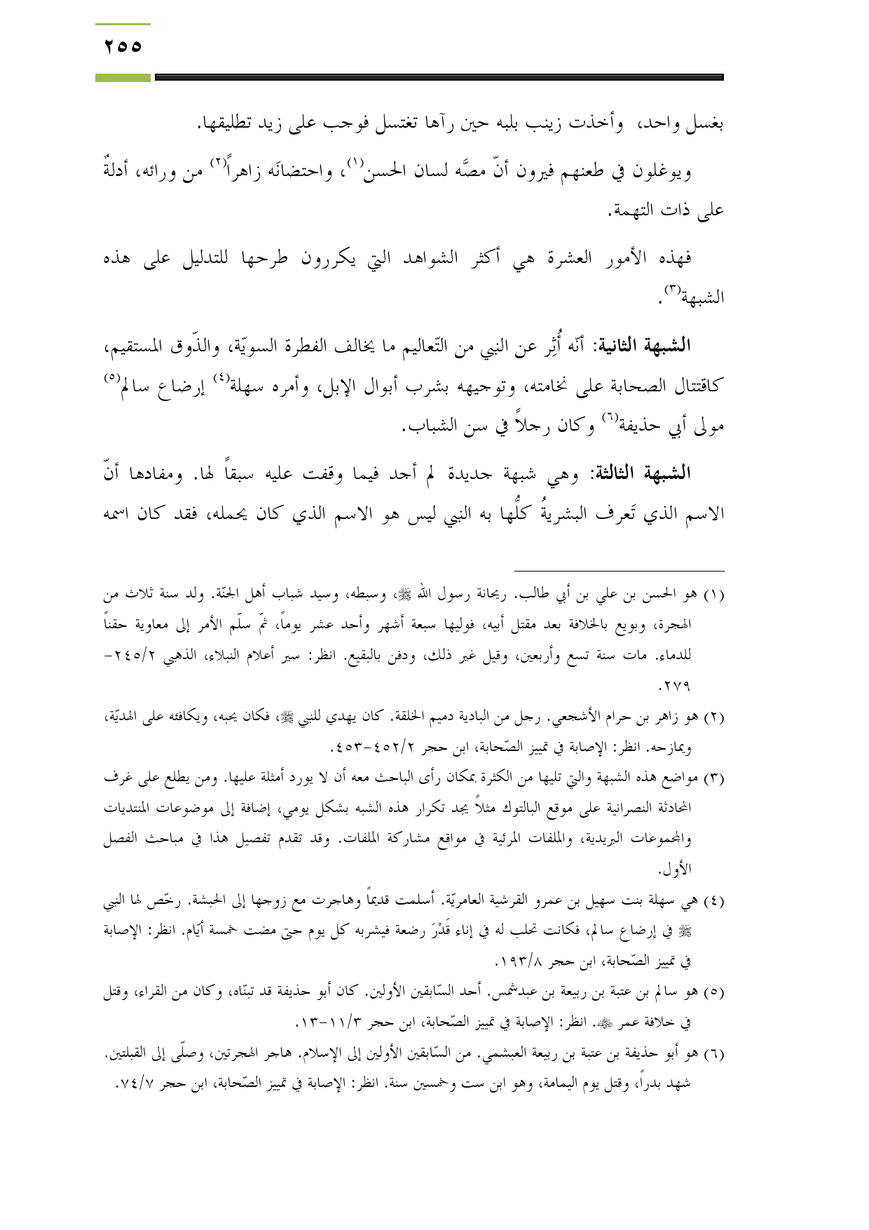 الشبهة الثانية: أنّه أُثِر عن النبي من التّعاليم ما يخالف الفطرة السويّة، والذّوق المستقيم، كاقتتال الصحابة على نخامته، وتوجيهه بشرب أبوال الإبل، وأمره سهلة (¬4) إرضاع سالم (¬5) مولى أبي حذيفة (¬6) وكان رجلاً في سن الشباب.