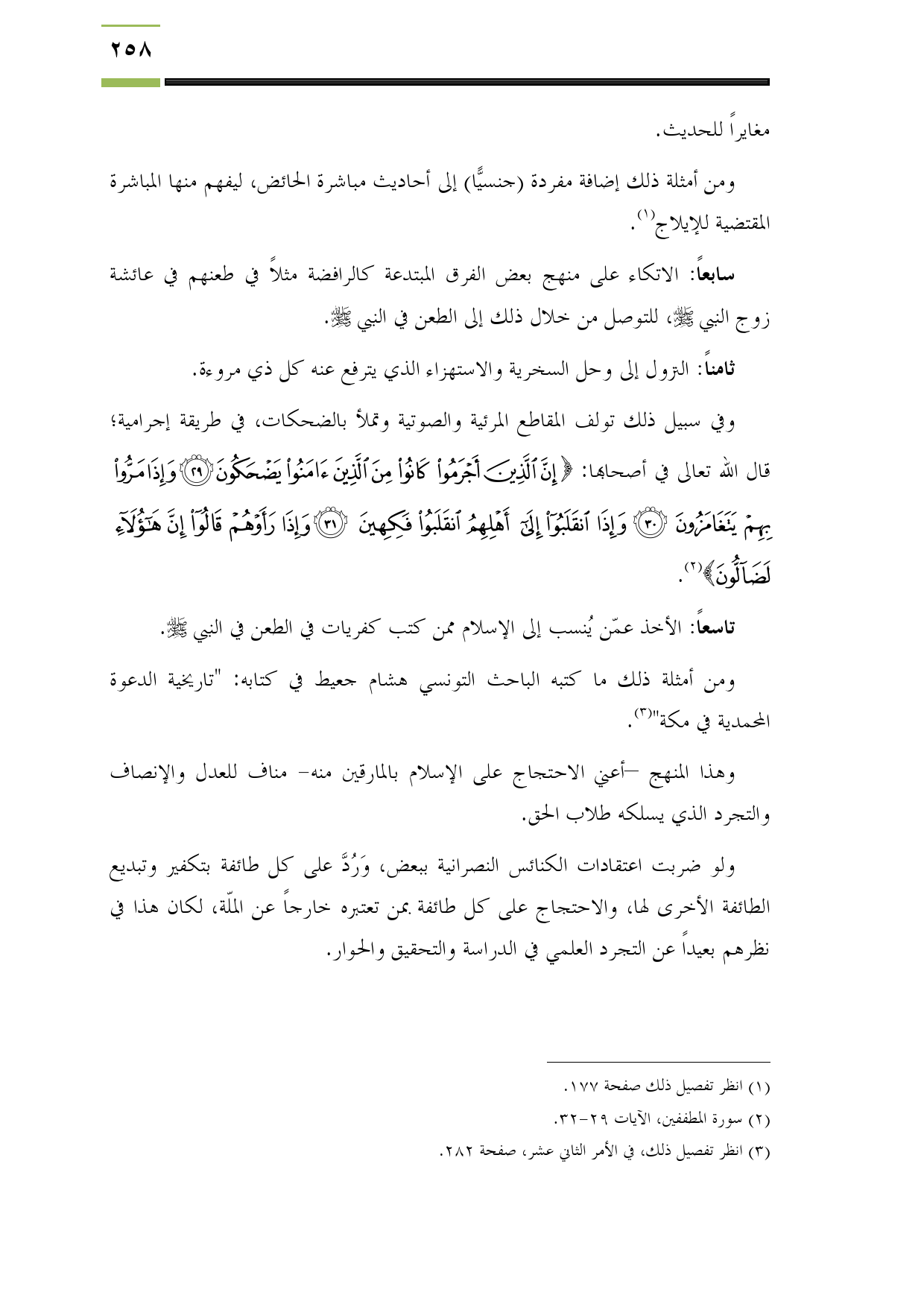 وهذا المنهج -أعني الاحتجاج على الإسلام بالمارقين منه- مناف للعدل والإنصاف والتجرد الذي يسلكه طلاب الحق.