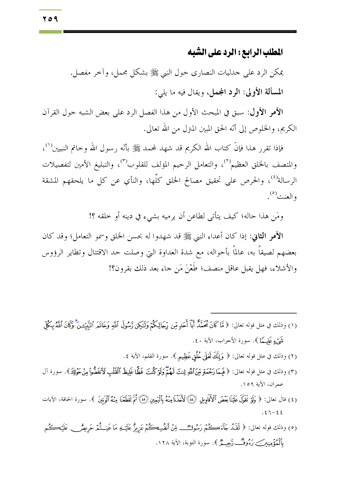 المطلب الرابع: الرد على الشبه