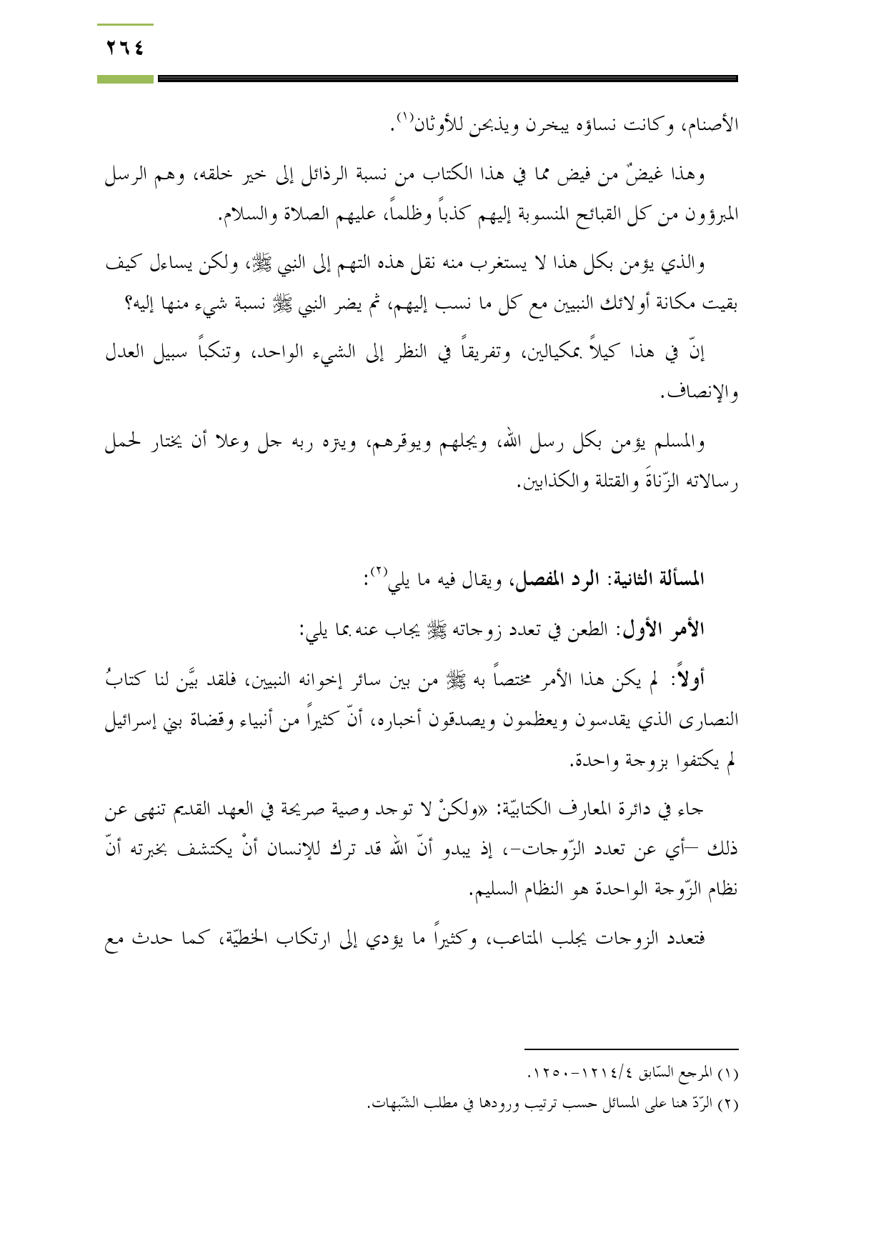 (¬2) الرّدّ هنا على المسائل حسب ترتيب ورودها في مطلب الشّبهات.