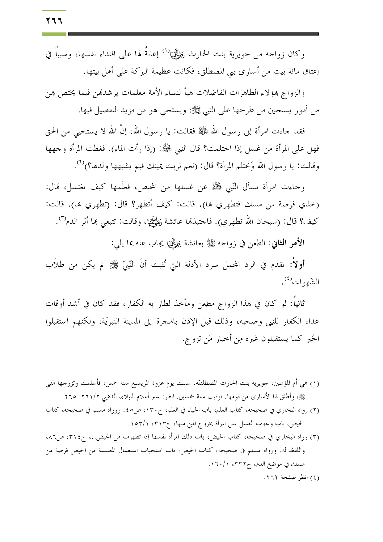 (¬3) رواه البخاري في صحيحه، كتاب الحيض، باب دلك المرأة نفسها إذا تطهرت من المحيض .. ، ح314، ص86، واللفظ له. ورواه مسلم في صحيحه، كتاب الحيض، باب استحباب استعمال المغتسلة من الحيض فرصة من مسك في موضع الدم، ح332، 1/ 160.