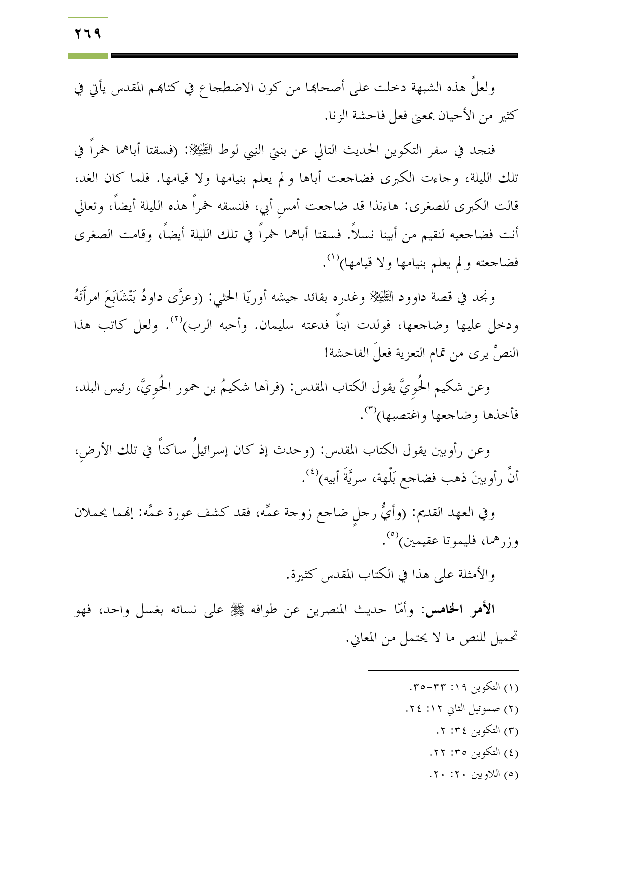 ولعلَّ هذه الشبهة دخلت على أصحابها من كون الاضطجاع في كتابهم المقدس يأتي في كثير من الأحيان بمعنى فعل فاحشة الزنا.