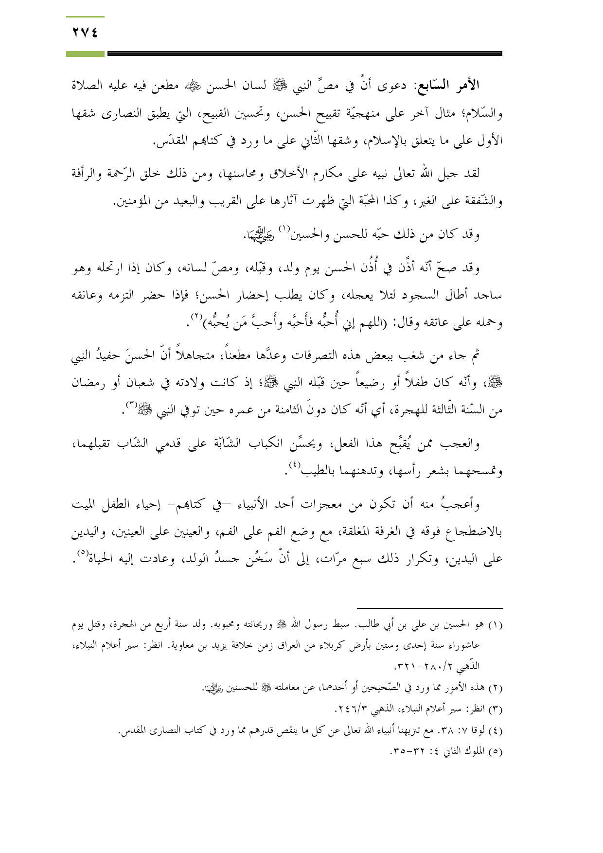 الأمر السّابع: دعوى أنَّ في مصِّ النبي - صلى الله عليه وسلم - لسان الحسن - رضي الله عنه - مطعن فيه عليه الصلاة والسّلام؛ مثال آخر على منهجيّة تقبيح الحسن، وتحسين القبيح، التي يطبق النصارى شقها الأول على ما يتعلق بالإسلام، وشقها الثّاني على ما ورد في كتابهم المقدّس.