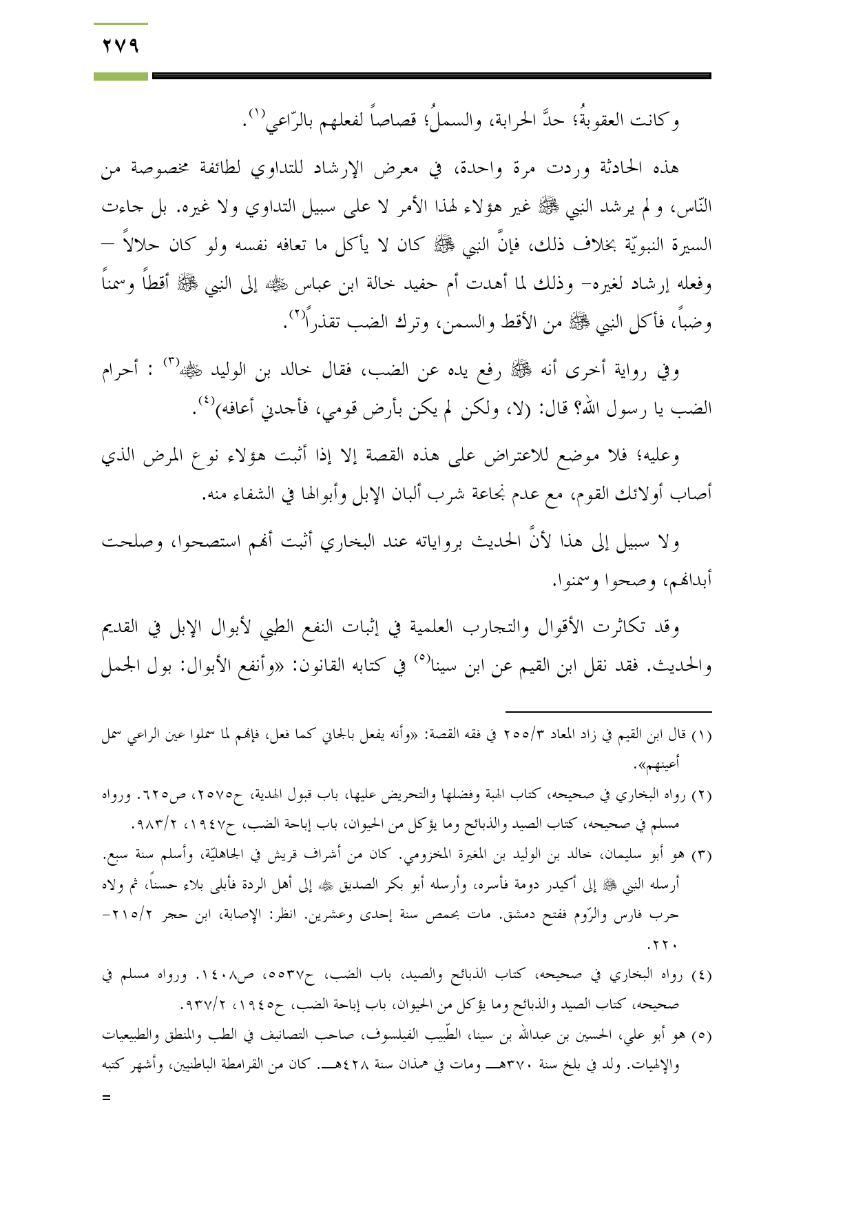 (¬4) رواه البخاري في صحيحه، كتاب الذبائح والصيد، باب الضب، ح5537، ص1408. ورواه مسلم في صحيحه، كتاب الصيد والذبائح وما يؤكل من الحيوان، باب إباحة الضب، ح1945، 2/ 937.