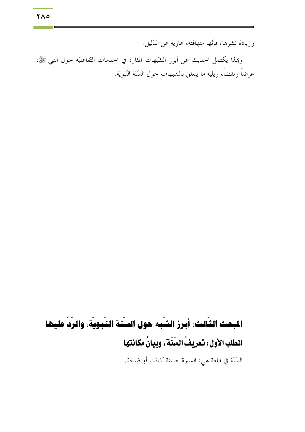 وبهذا يكتمل الحديث عن أبرز الشّبهات المثارة في الخدمات التّفاعليّة حول النبي - صلى الله عليه وسلم -، عرضاً ونقضاً، ويليه ما يتعلق بالشبهات حول السّنّة النّبويّة.