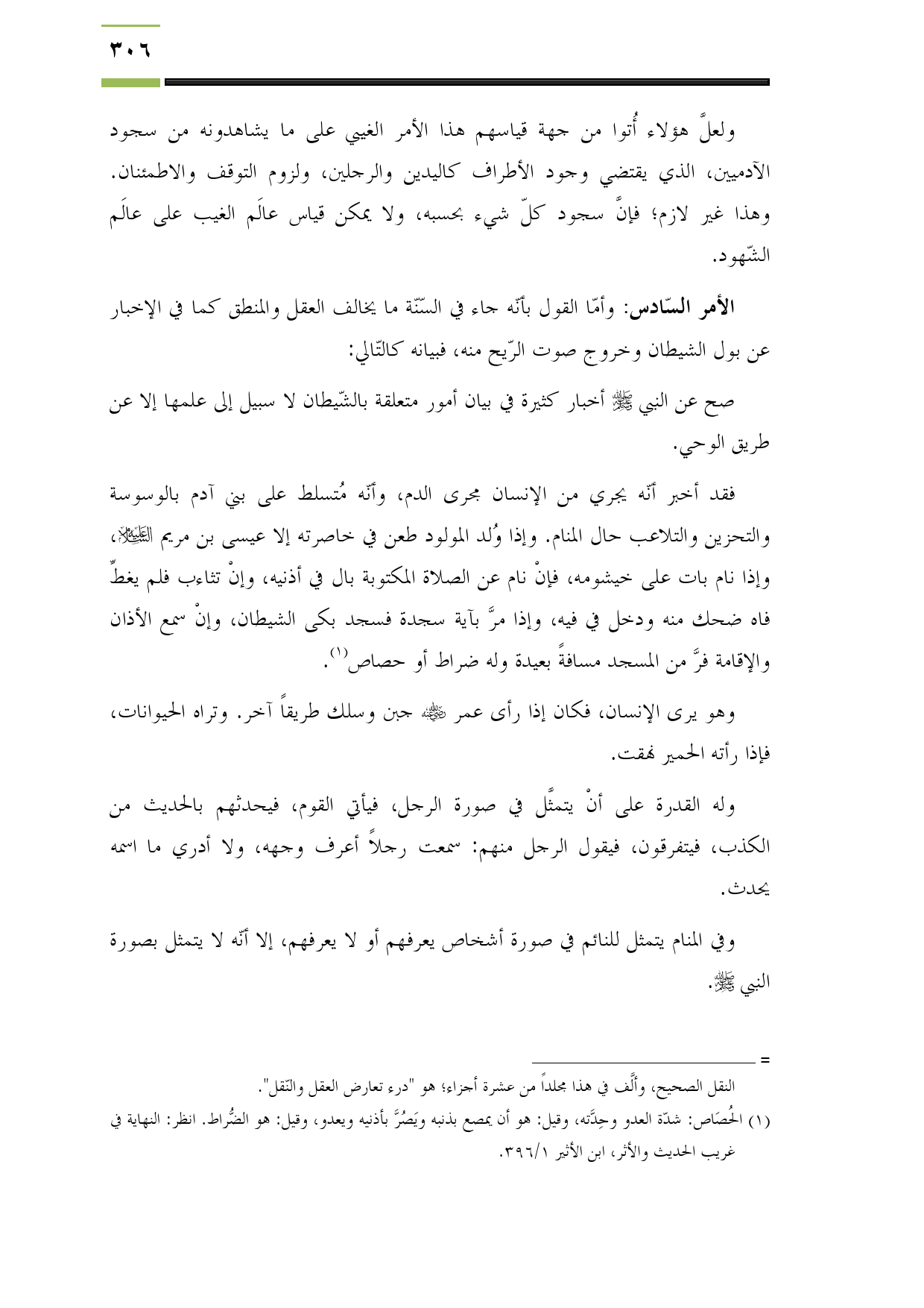 الأمر السّادس: وأمّا القول بأنّه جاء في السّنّة ما يخالف العقل والمنطق كما في الإخبار عن بول الشيطان وخروج صوت الرّيح منه، فبيانه كالتّالي: