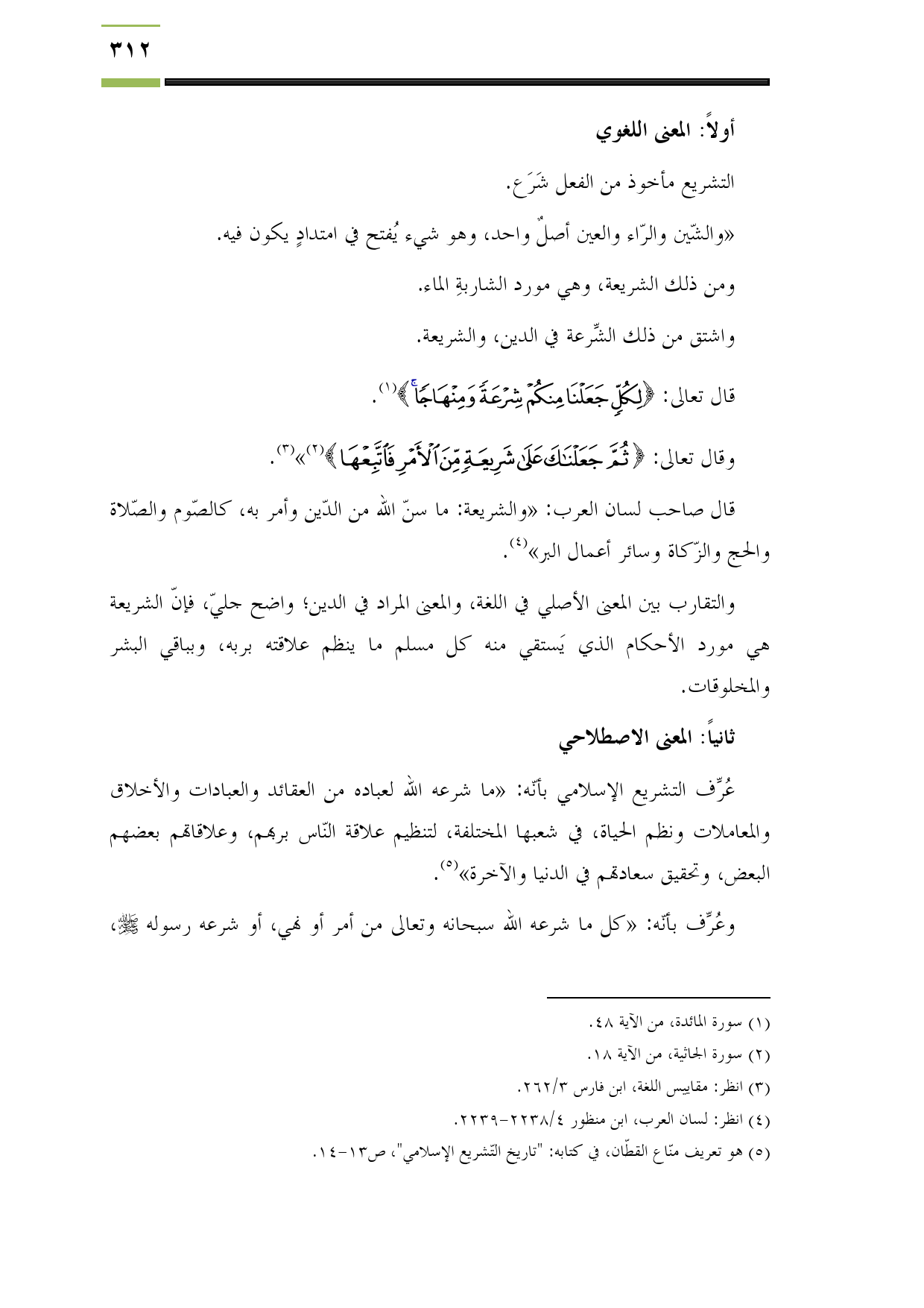 المطلب الأول: المقصود بالتّشريع الإسلامي