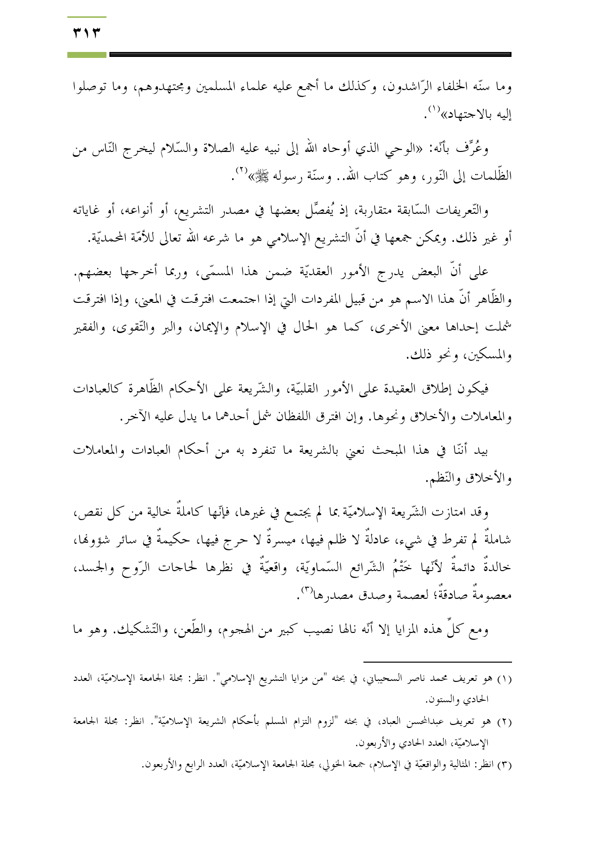 (¬3) هو تعريف عبد المحسن العباد، في بحثه "لزوم التزام المسلم بأحكام الشريعة الإسلاميّة". انظر: مجلة الجامعة الإسلاميّة، العدد الحادي والأربعون.