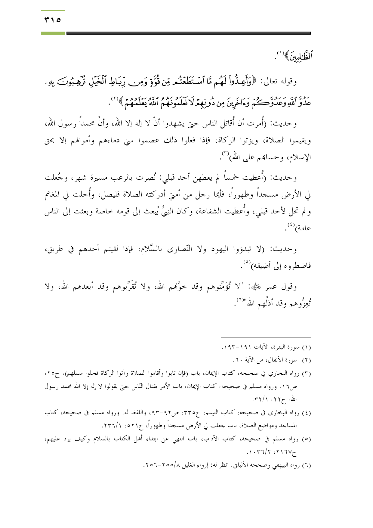 (¬5) رواه مسلم في صحيحه، كتاب الآداب، باب النهي عن ابتداء أهل الكتاب بالسلام وكيف يرد عليهم، ح2167، 2/ 1036.