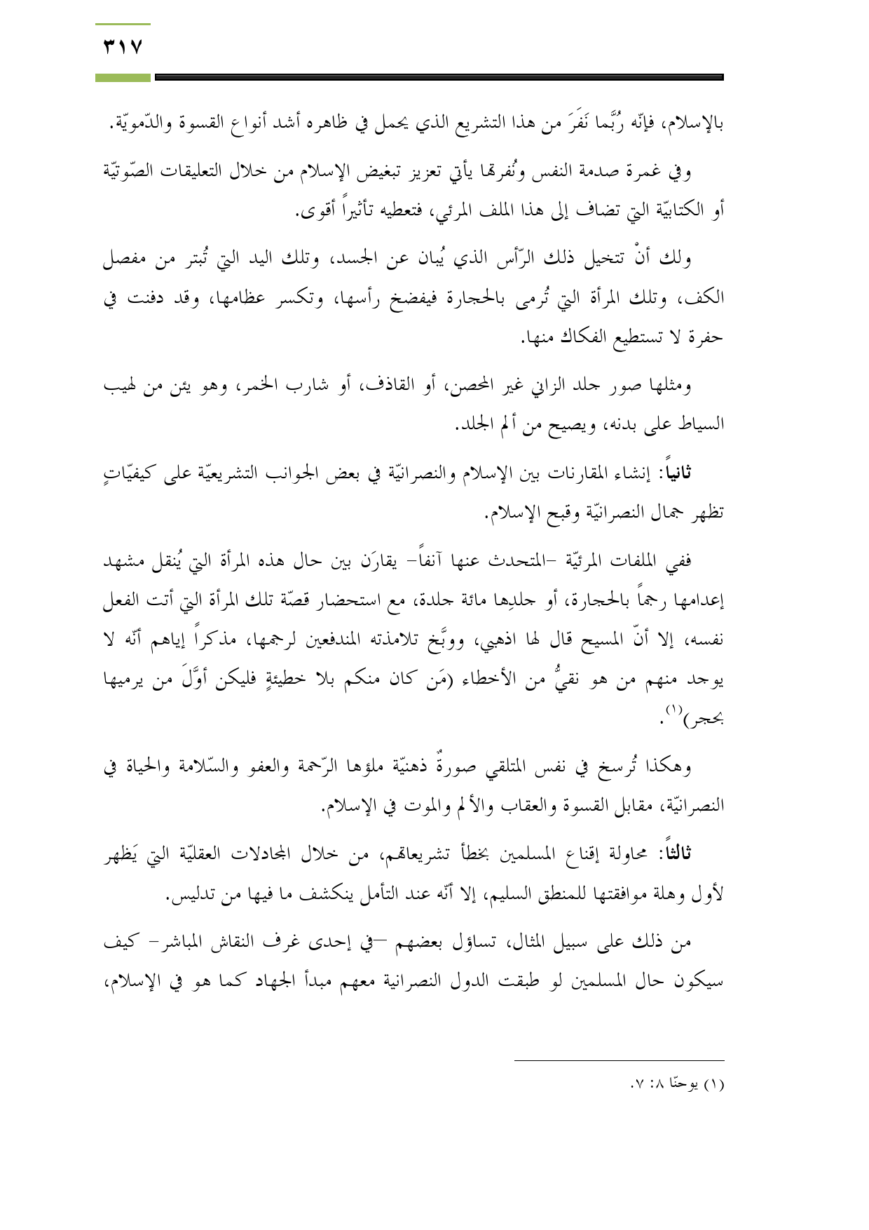 ثانياً: إنشاء المقارنات بين الإسلام والنصرانيّة في بعض الجوانب التشريعيّة على كيفيّاتٍ تظهر جمال النصرانيّة وقبح الإسلام.