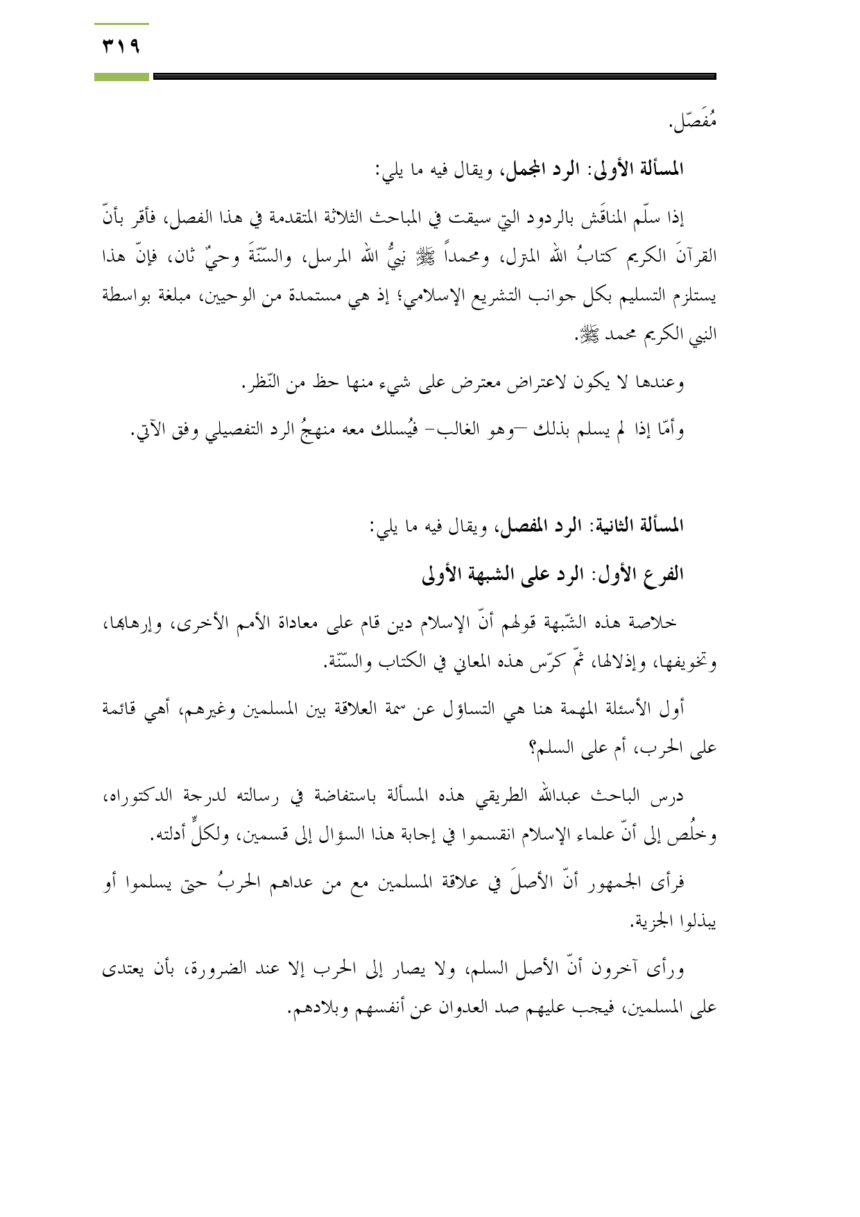 المسألة الثانية: الرد المفصل، ويقال فيه ما يلي: