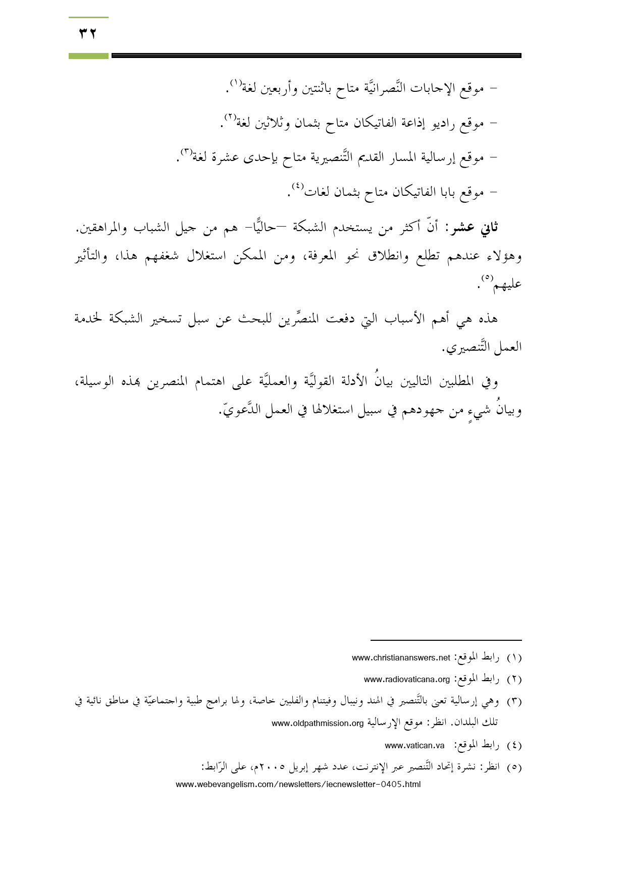 (¬5) انظر: نشرة إتحاد التَّنصير عبر الإنترنت، عدد شهر إبريل 2005م، على الرّابط: