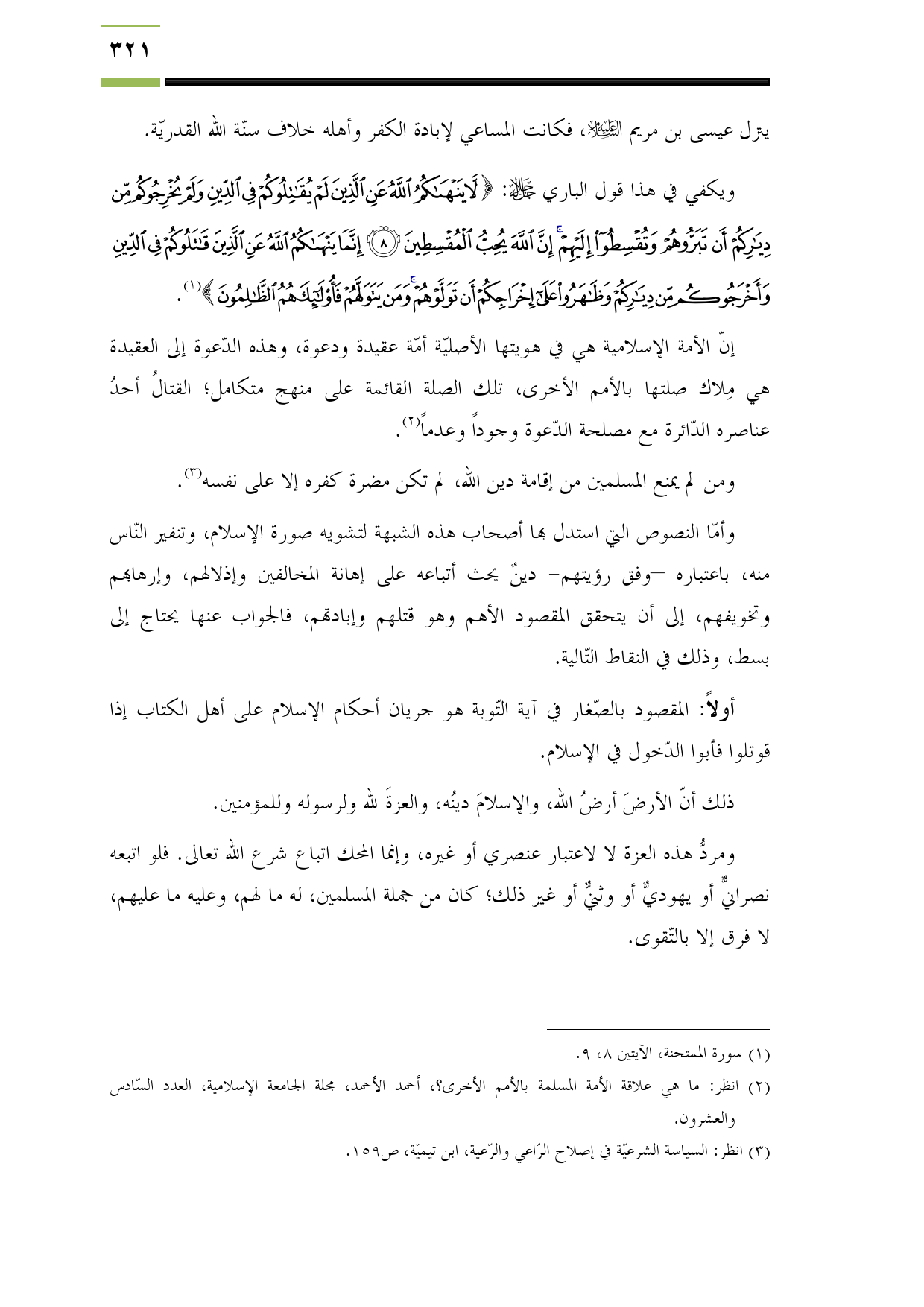 (¬2) انظر: ما هي علاقة الأمة المسلمة بالأمم الأخرى؟، أحمد الأحمد، مجلة الجامعة الإسلامية، العدد السّادس والعشرون.