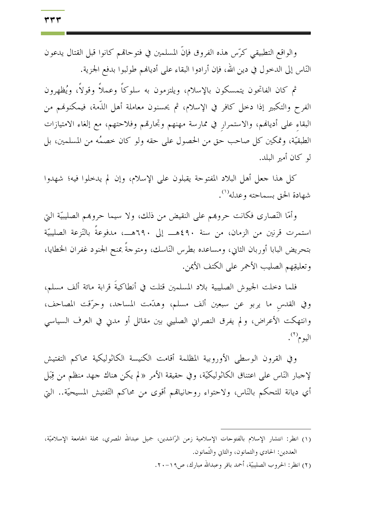 (¬1) انظر: انتشار الإسلام بالفتوحات الإسلامية زمن الرّاشدين، جميل عبد الله المصري، مجلة الجامعة الإسلاميّة، العددين: الحادي والثمانون، والثاني والثّمانون.