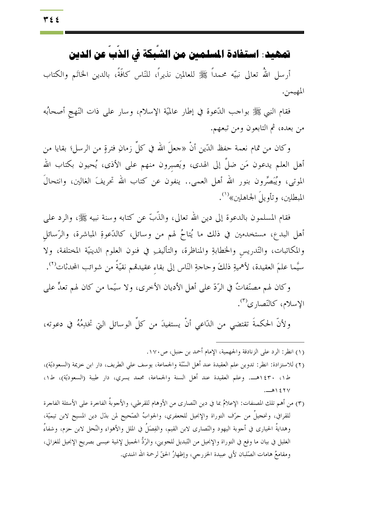 تمهيد: استفادة المسلمين من الشَّبكة في الذّبّ عن الدين