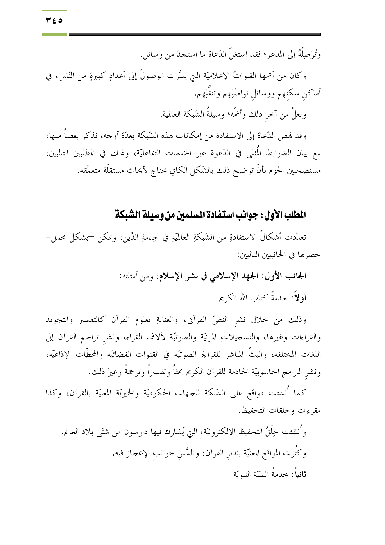 المطلب الأول: جوانب استفادة المسلمين من وسيلة الشبكة