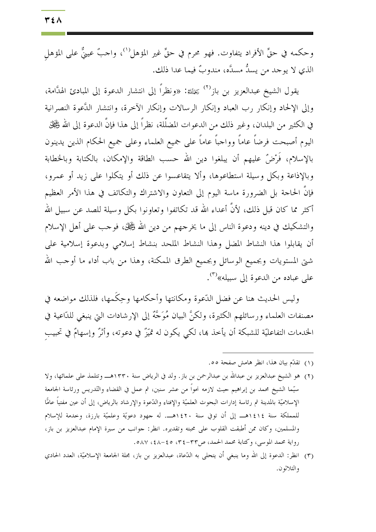 (¬3) انظر: الدعوة إلى الله وما ينبغي أن يتحلى به الدّعاة، عبد العزيز بن باز، مجلة الجامعة الإسلاميّة، العدد الحادي والثلاثون.